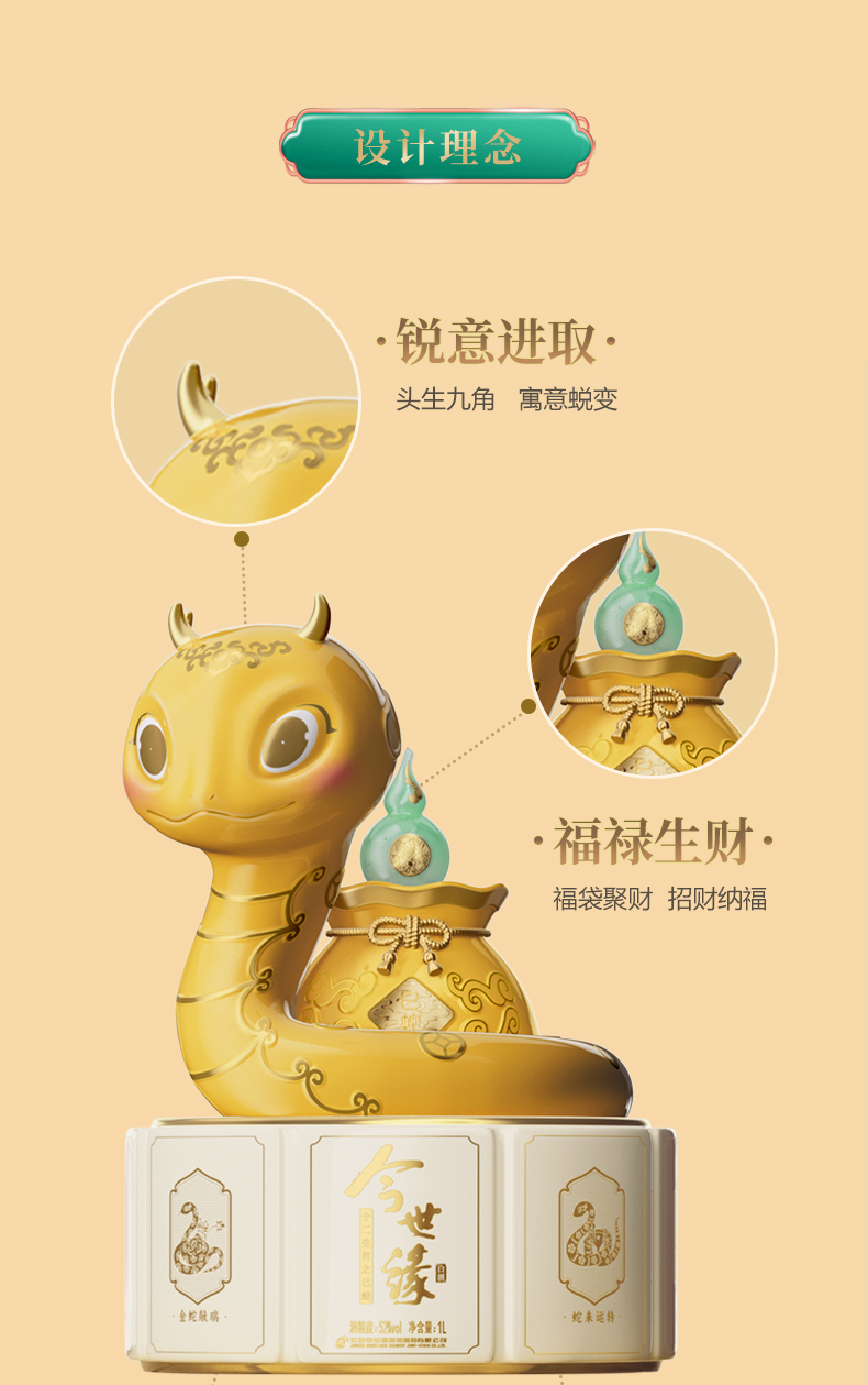 【酒厂直营】52度1L今世缘乙巳蛇年生肖纪念酒