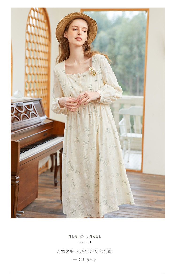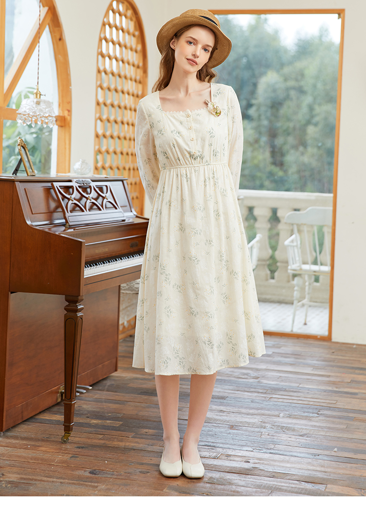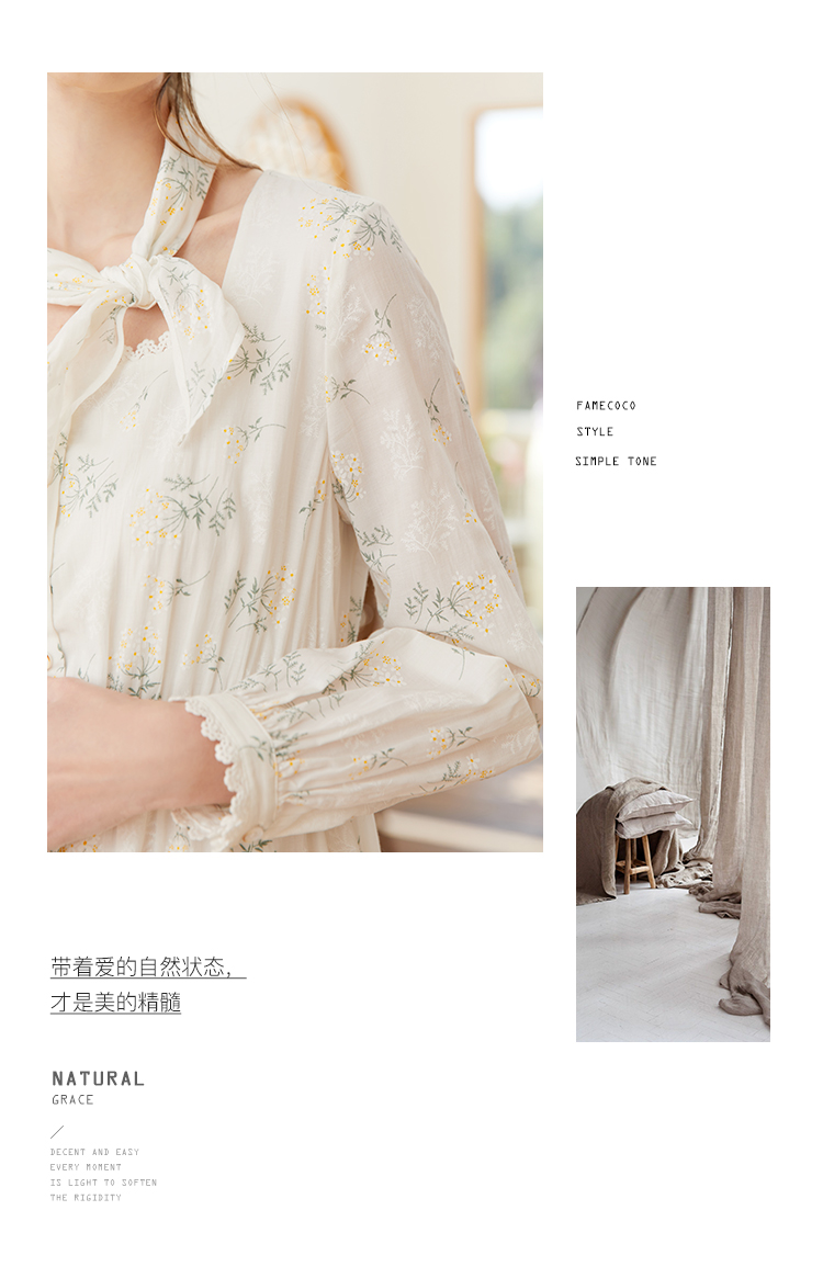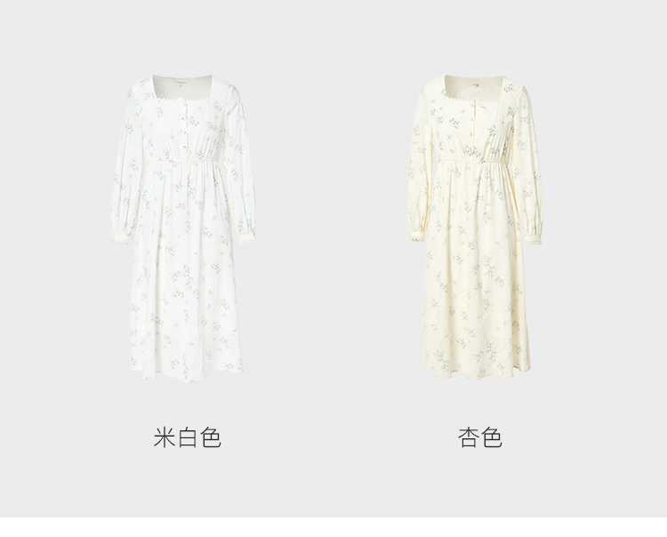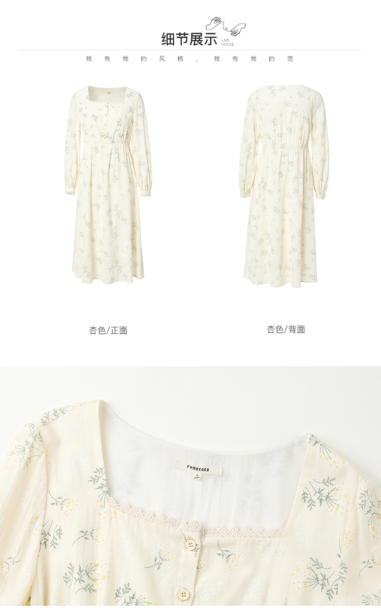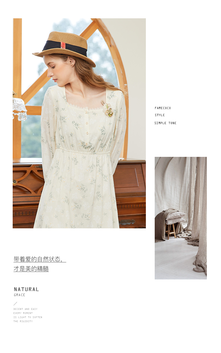 famecoco范可儿高腰显瘦方领碎花连衣裙女春季一字肩裙子FAB1FA001