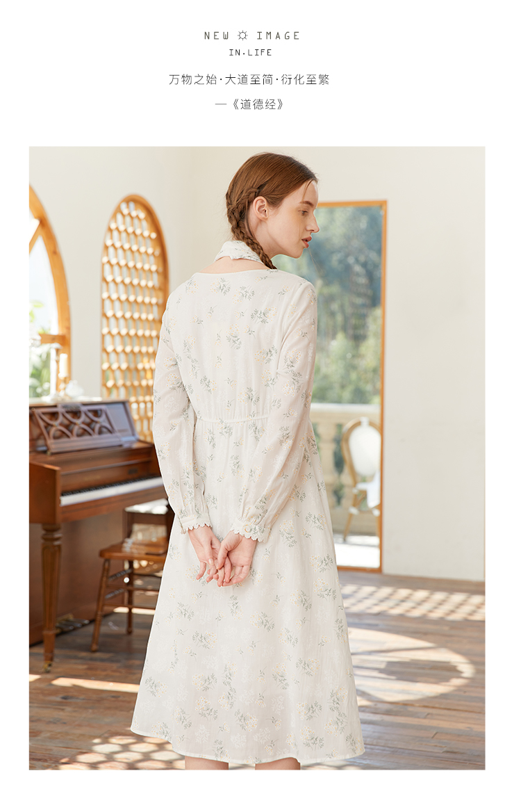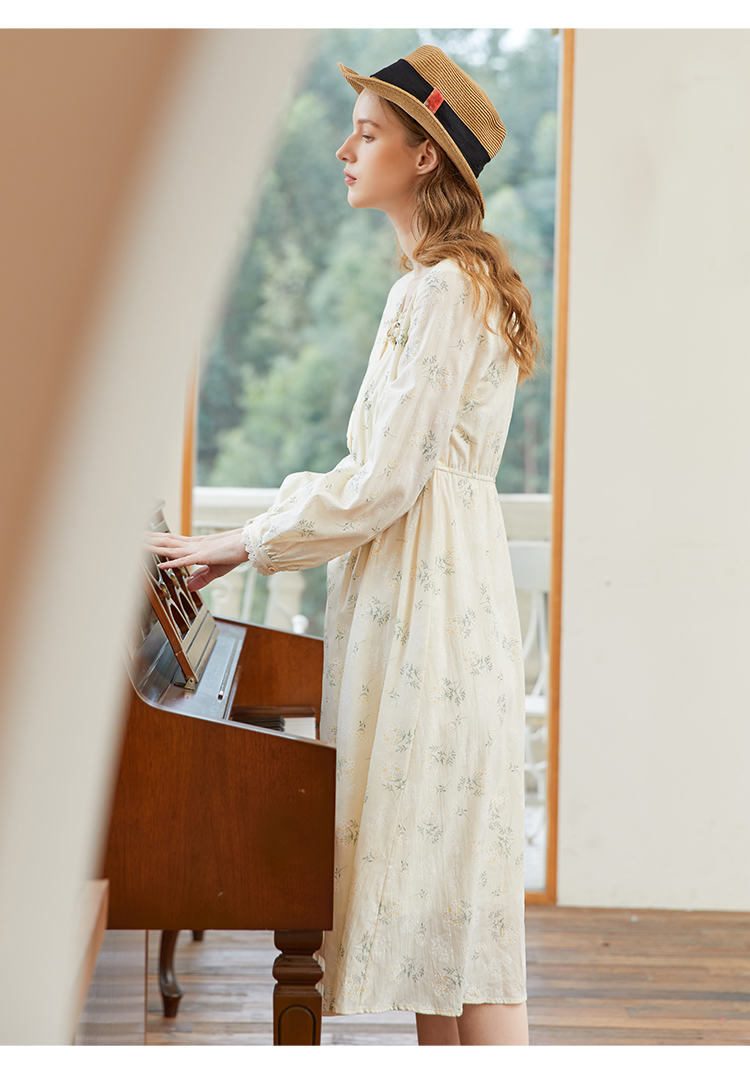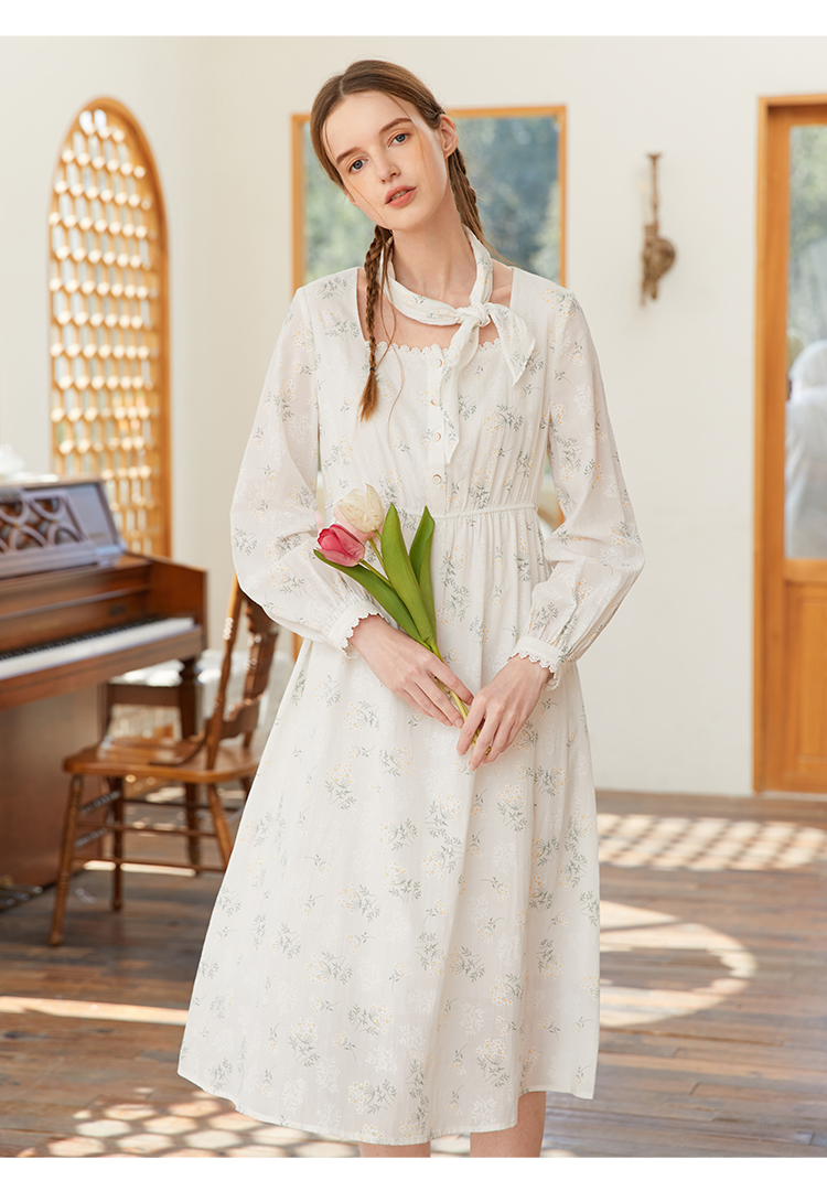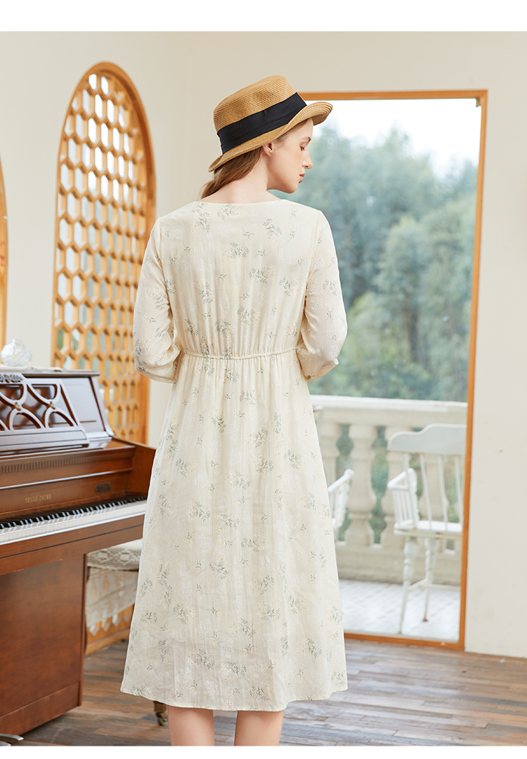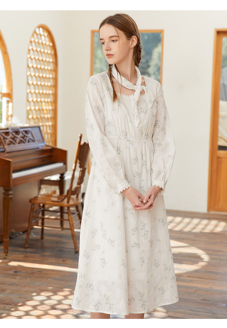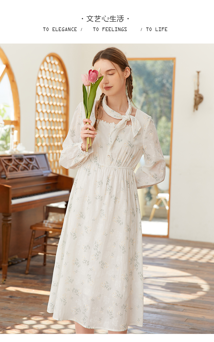 famecoco范可儿高腰显瘦方领碎花连衣裙女春季一字肩裙子FAB1FA001