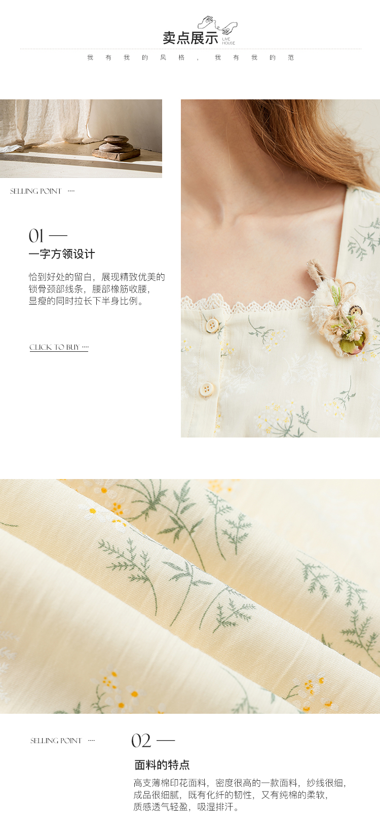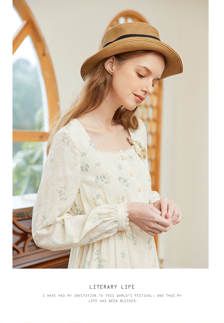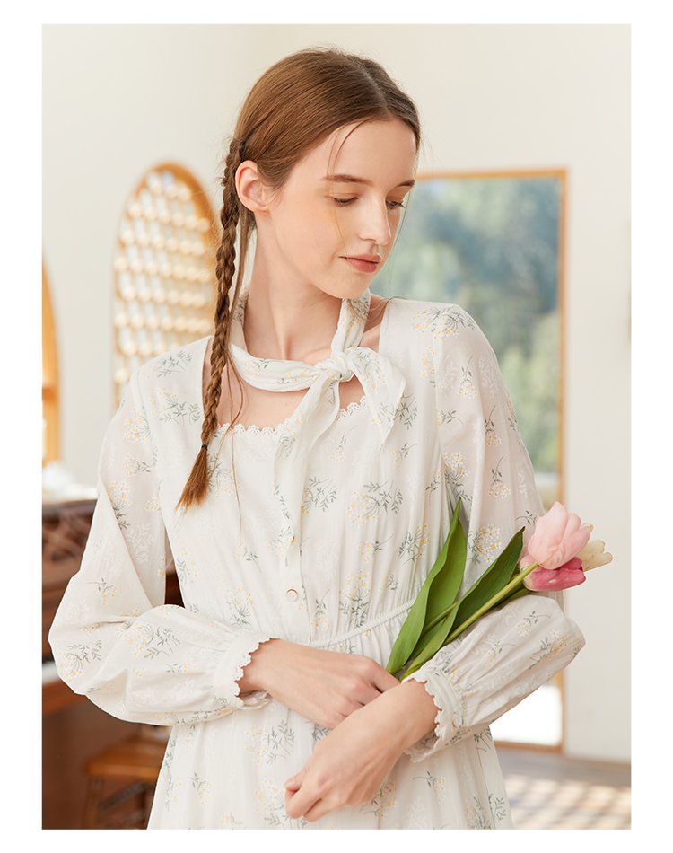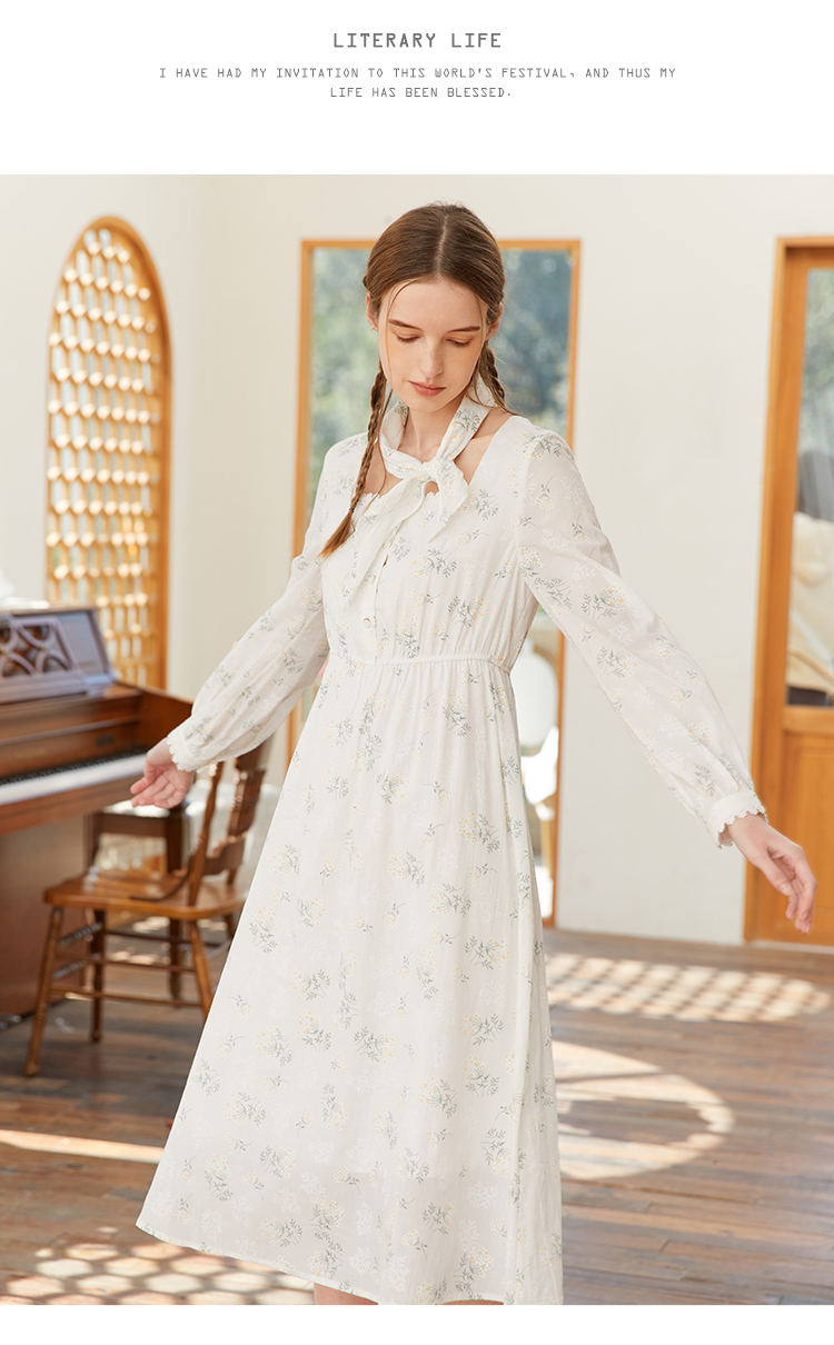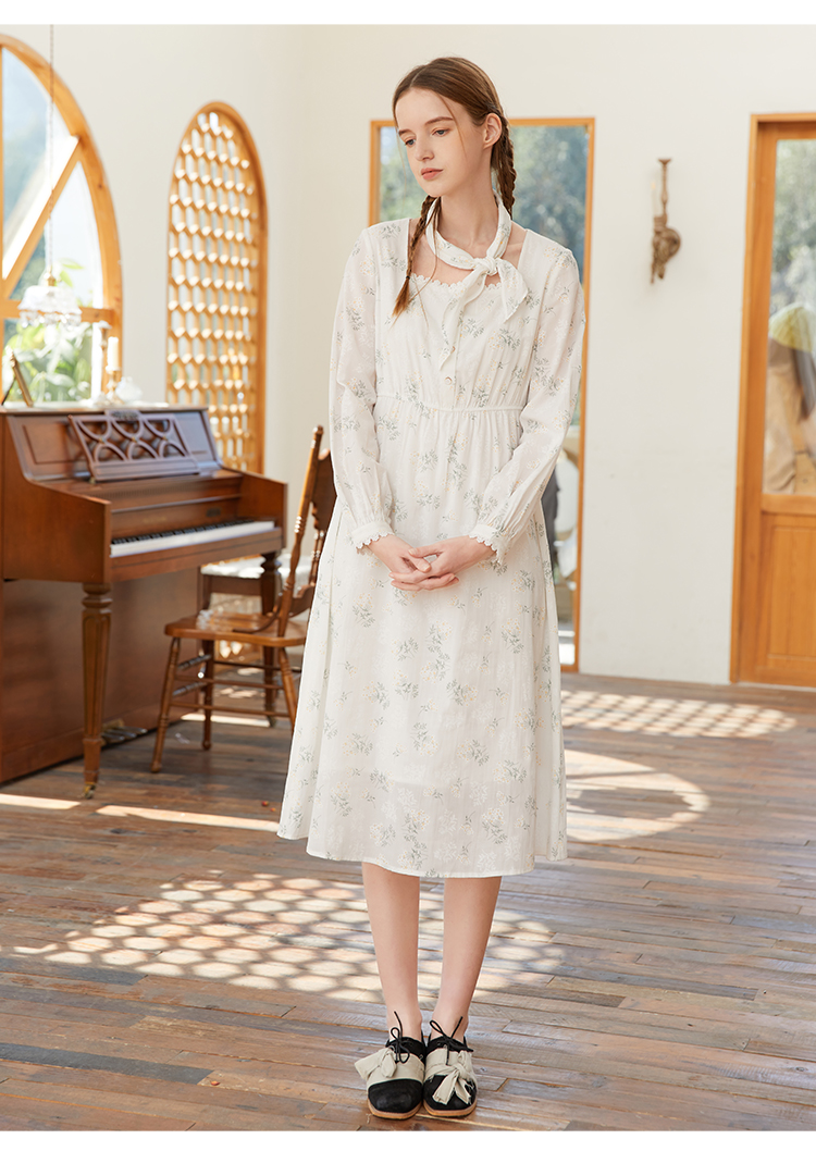 famecoco范可儿高腰显瘦方领碎花连衣裙女春季一字肩裙子FAB1FA001