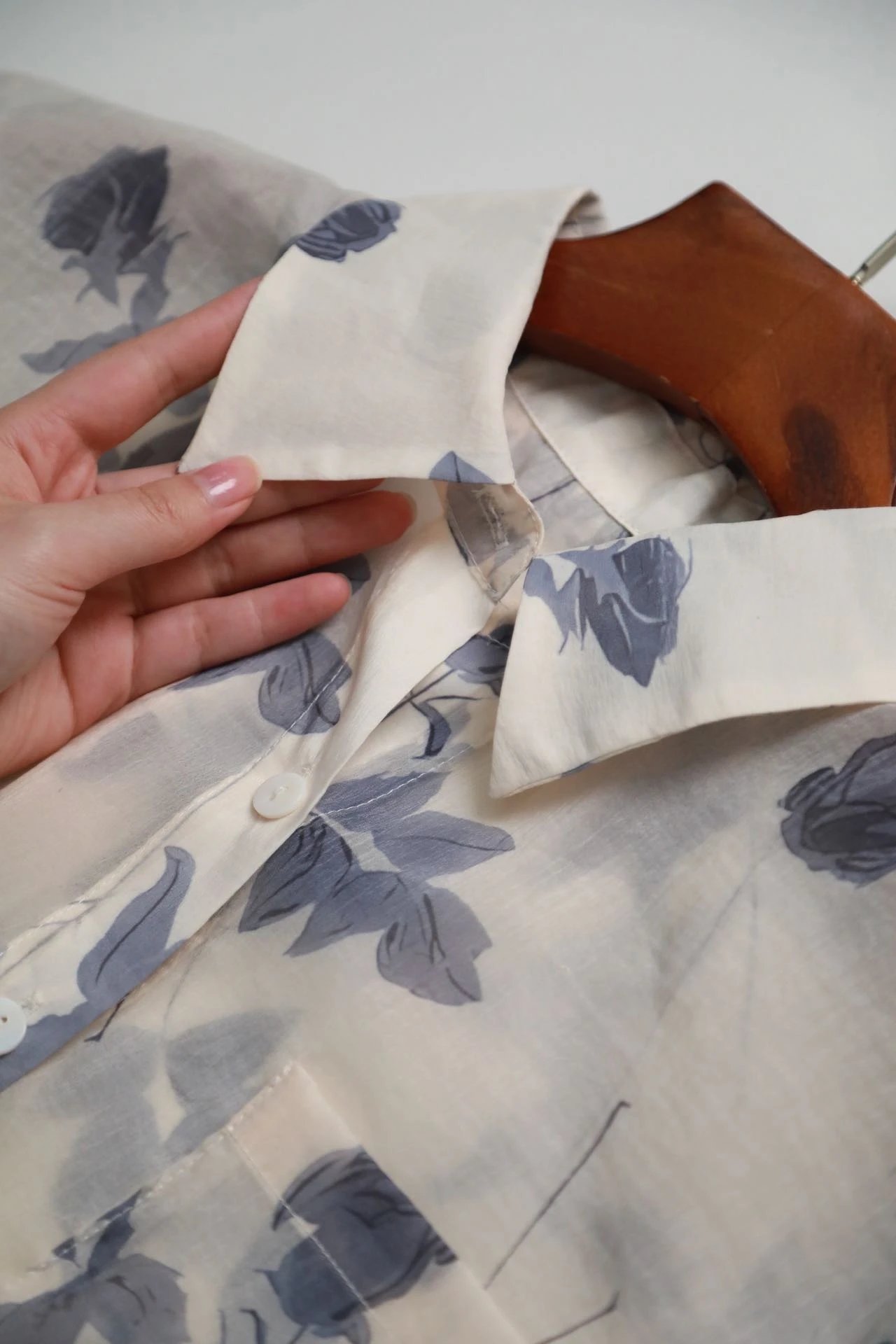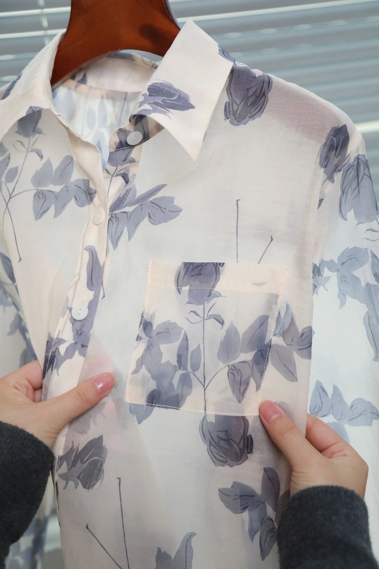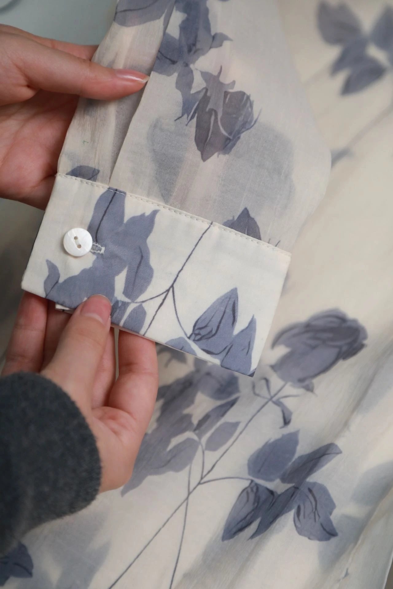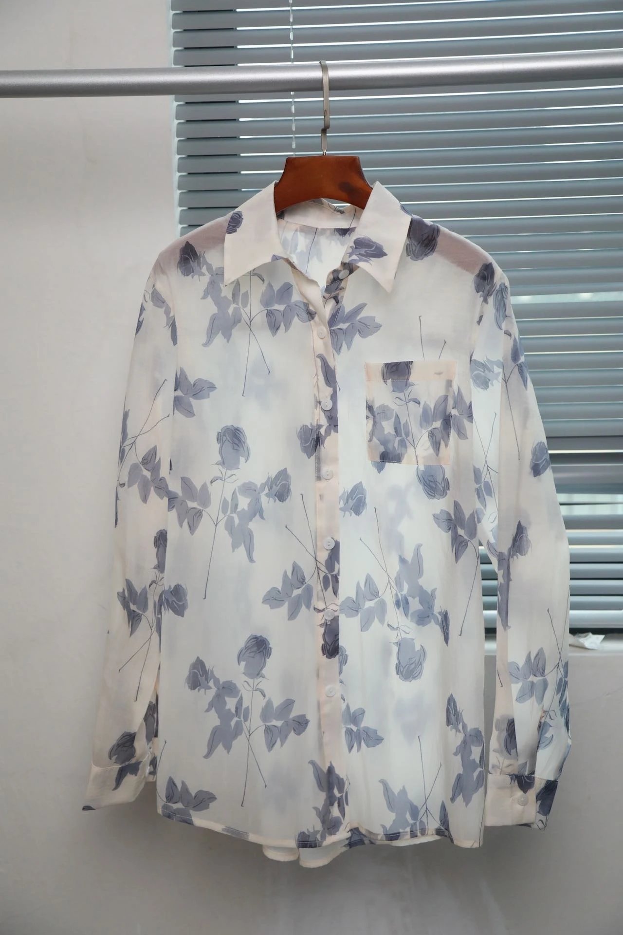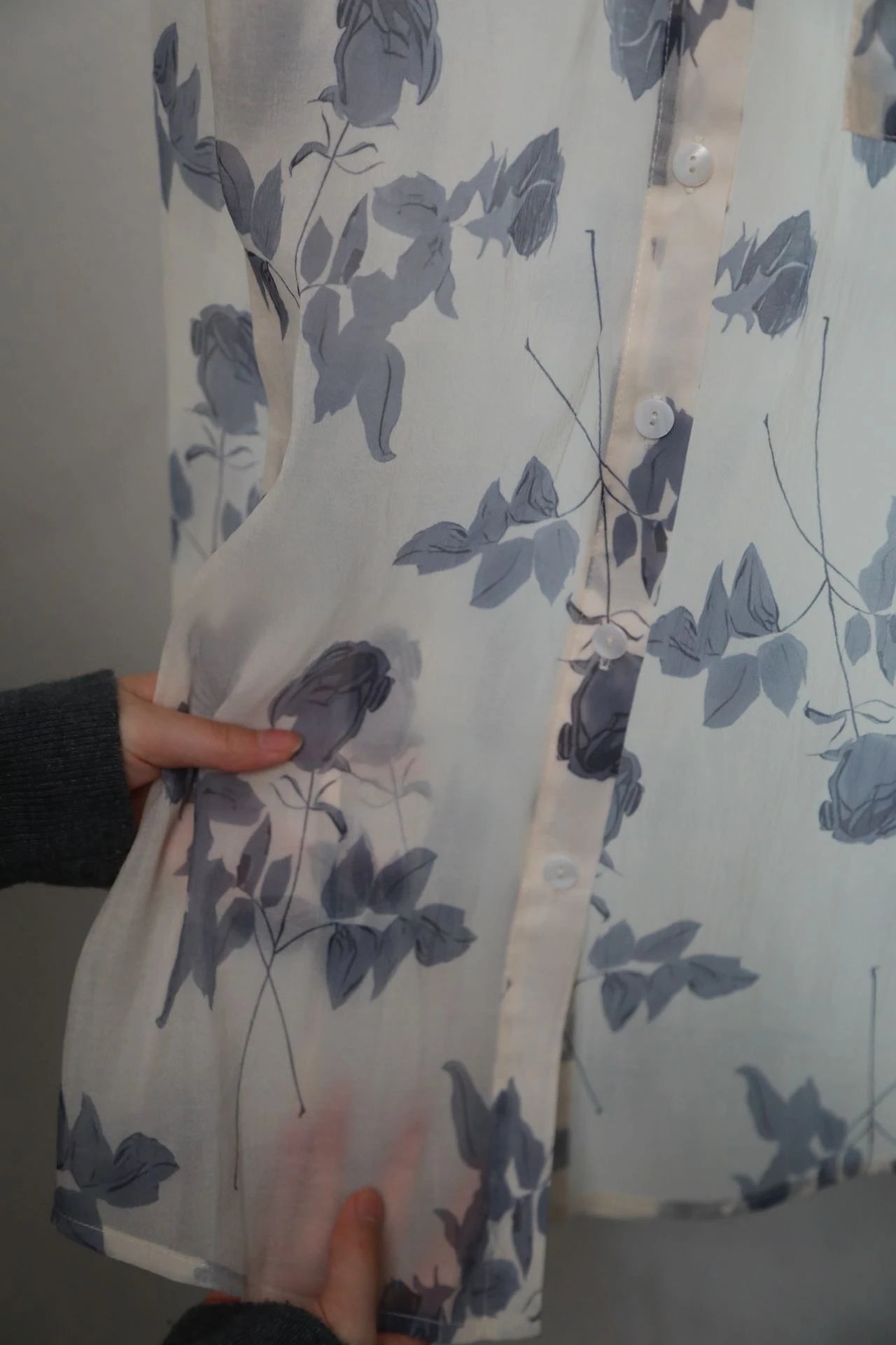 美到心坎 法式温柔水墨玫瑰花衬衫