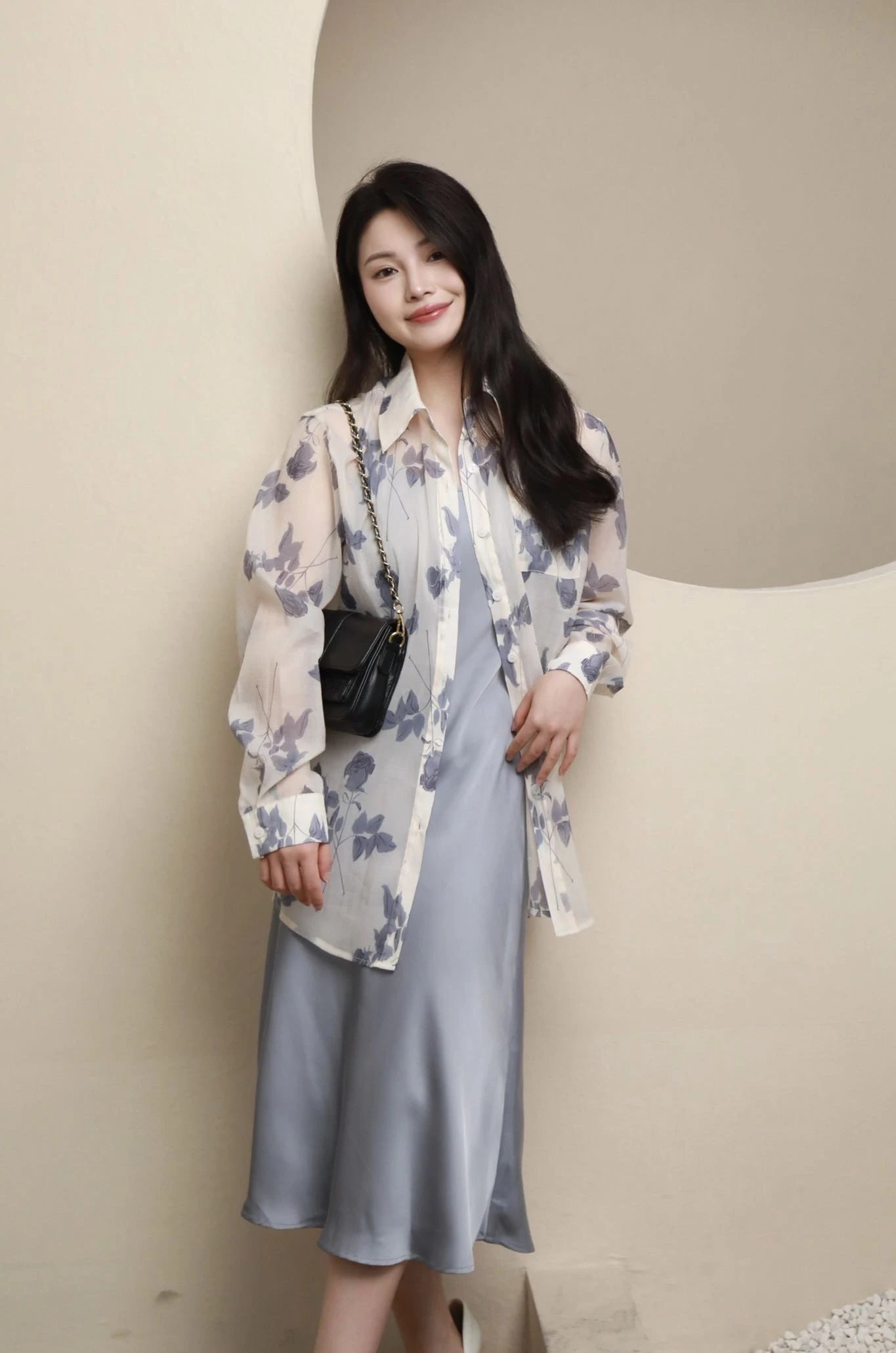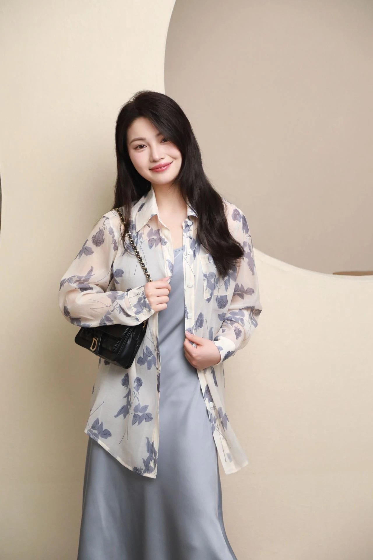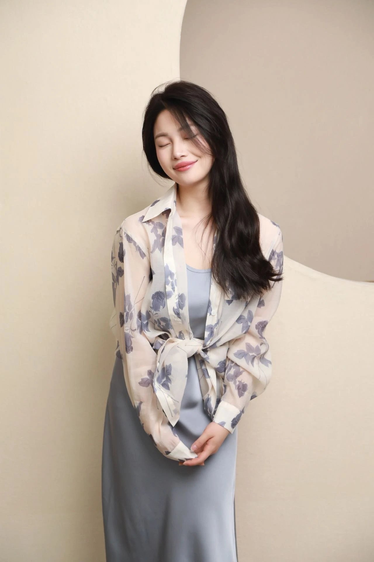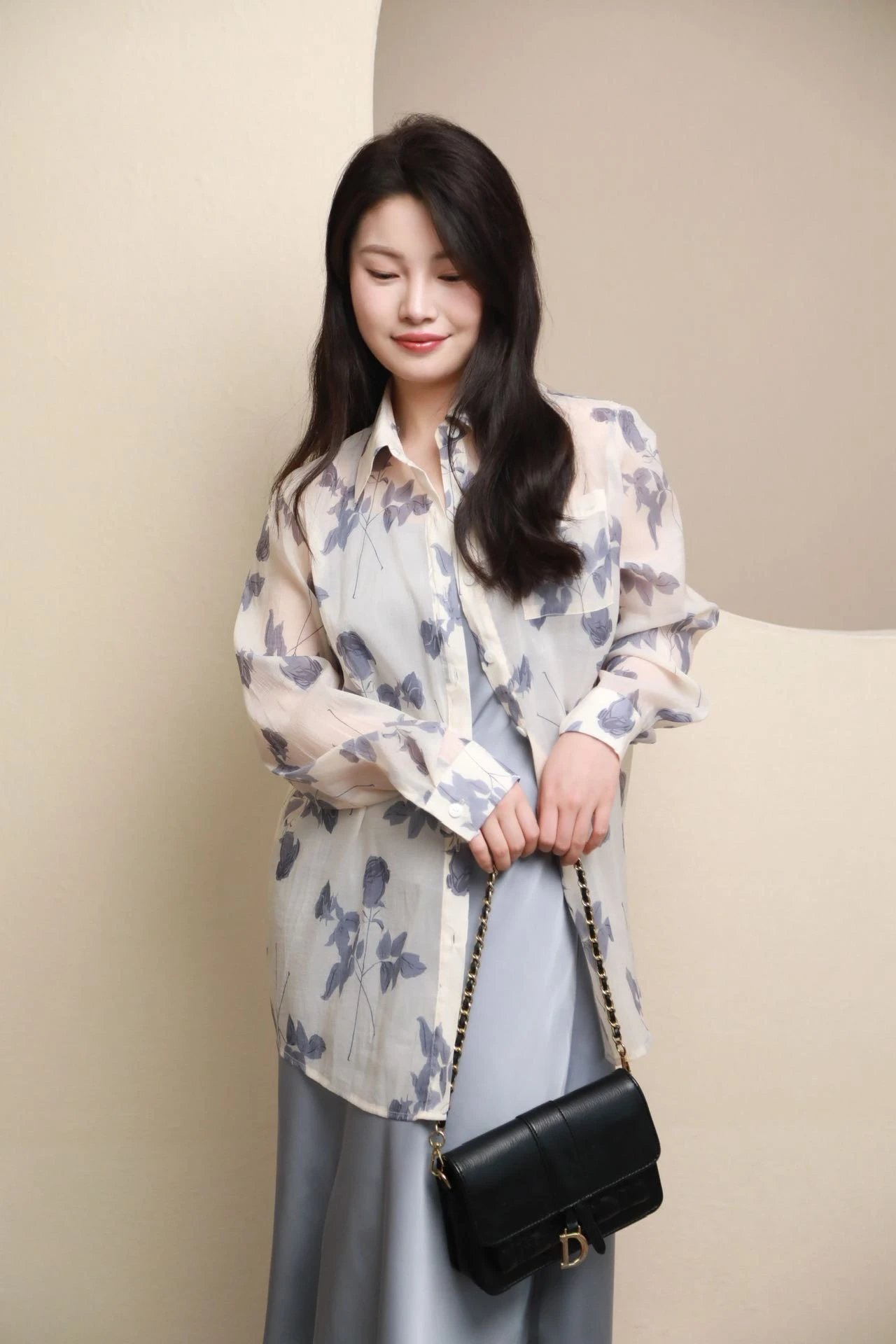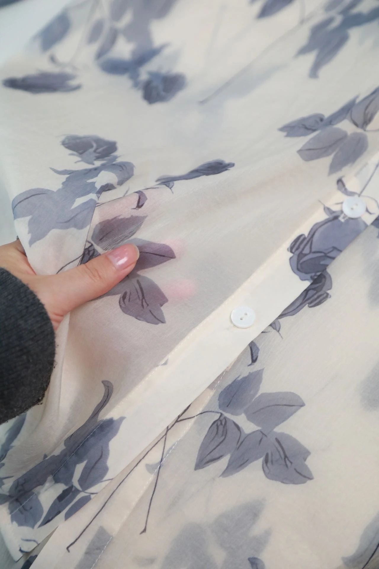 美到心坎 法式温柔水墨玫瑰花衬衫
