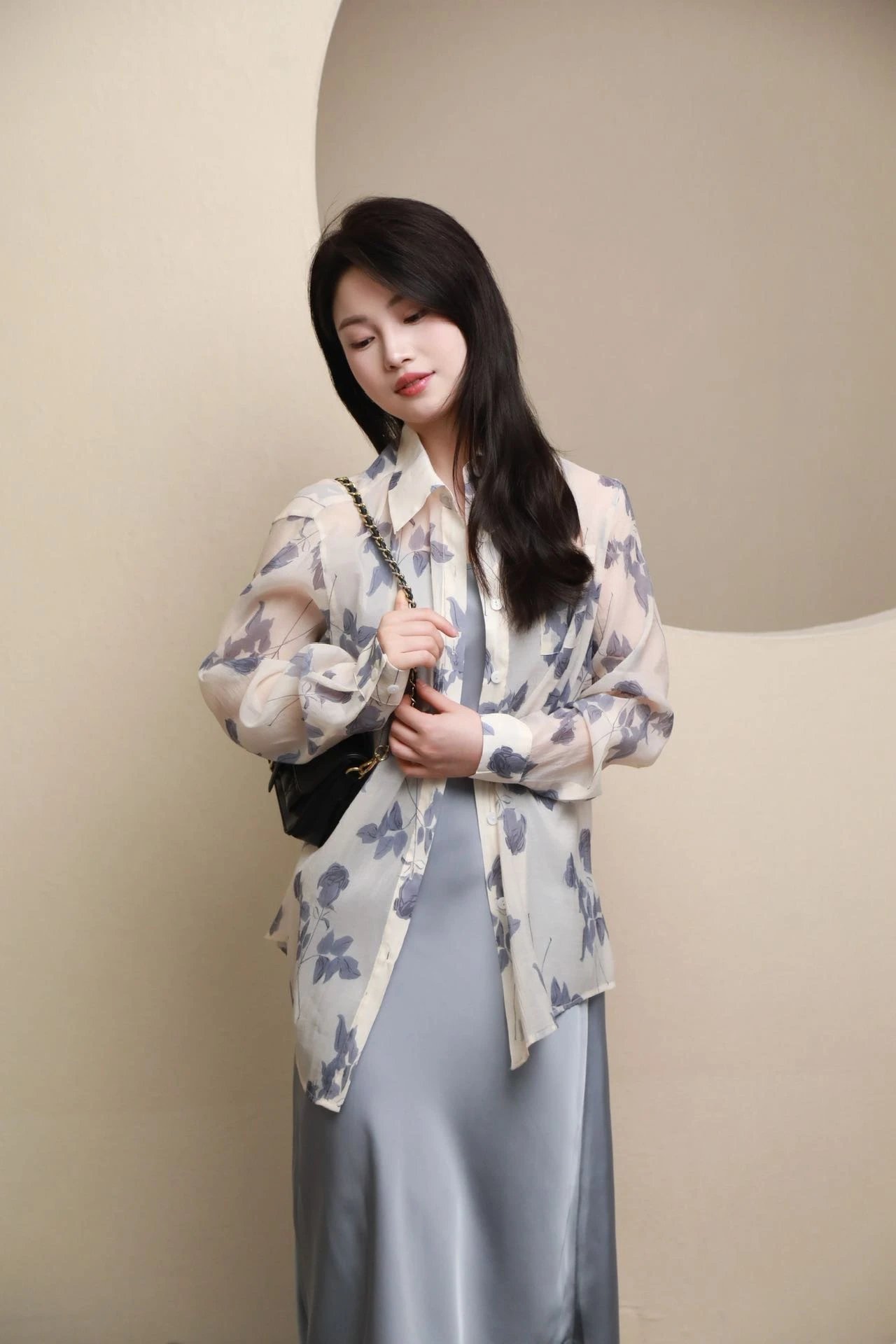 抢来的库存⚠️水墨玫瑰天丝衬衫❗️线下品牌订单剩余⚠️意大利进口客供天丝面料❗️
