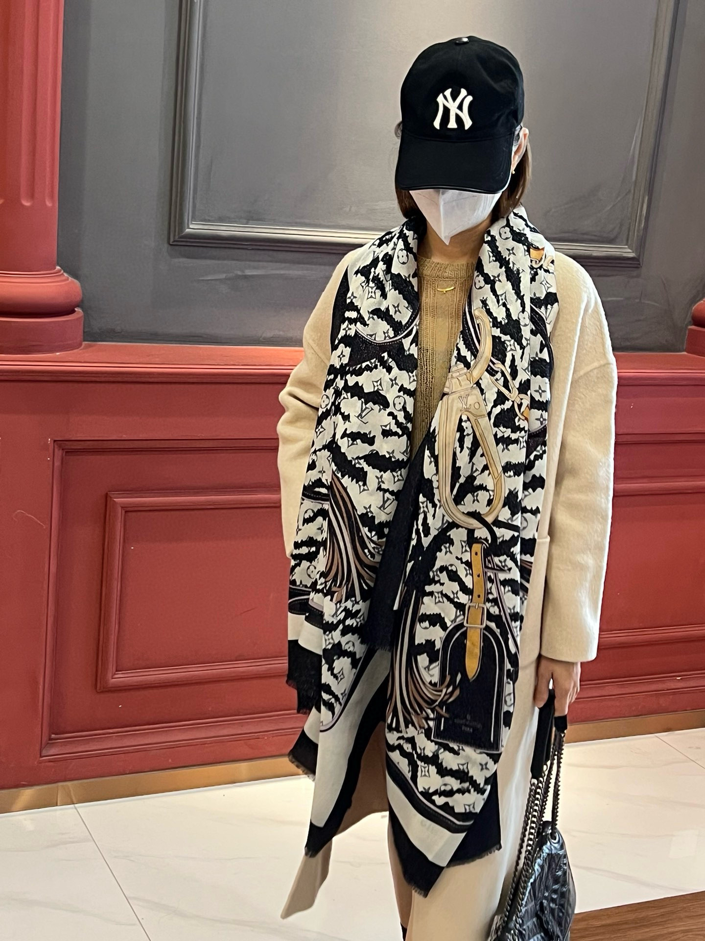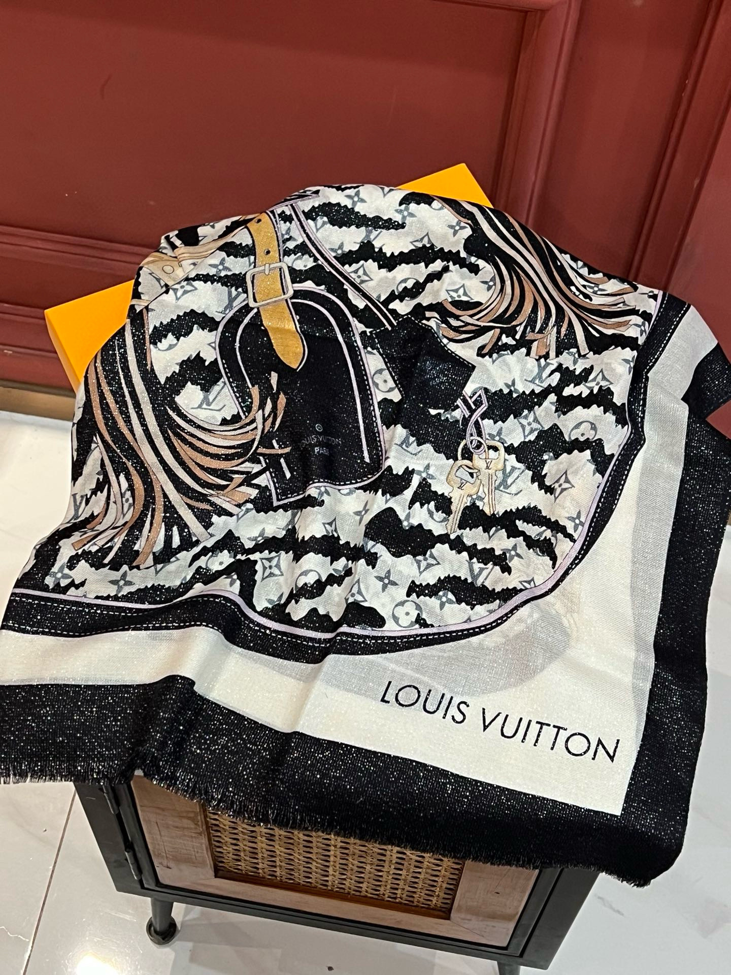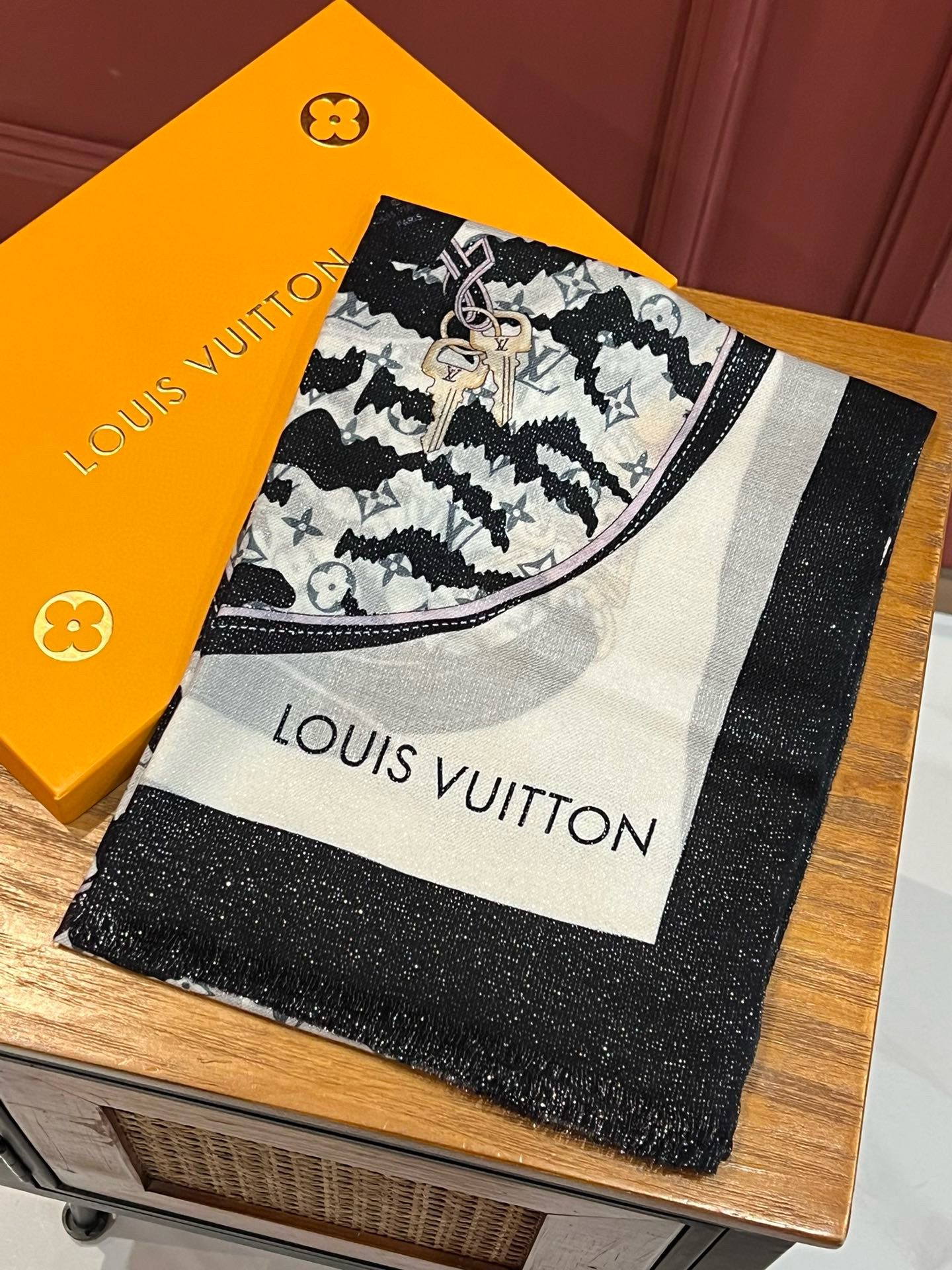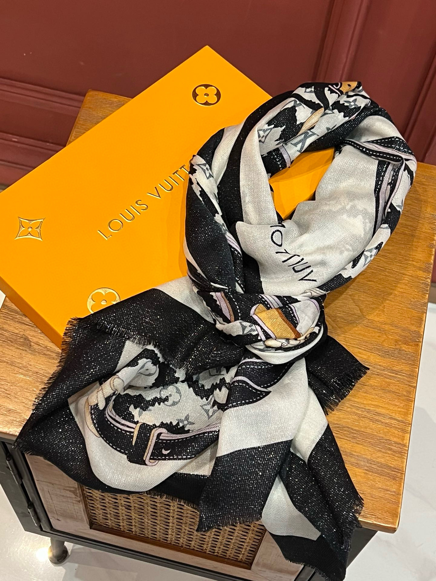 秋冬特惠💰420 会发光发亮的围巾 真心赞‼【L虎纹图案】以Monogram花纹为背景,印有标志的路易威登设计元素:皮革带、金属链与挂锁设计,强烈推荐手慢无‼千万别去专柜买 绝对一模一样,羊绒‼价格真心好,这个size不大不小特别好搭配,品质超级好‼拿到手就会懂的高端品质,高端细节所见即所得 尺寸:110*200cm
