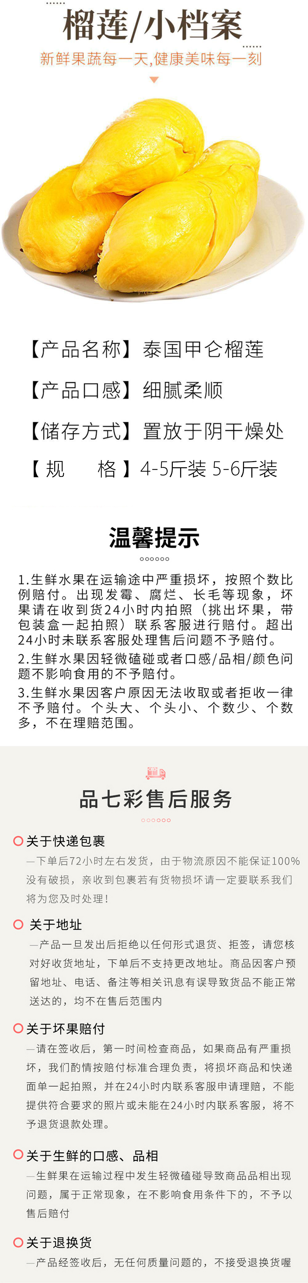 泰国进口甲仑榴莲当季新鲜水果口感纯正黄肉香甜软糯绵软柔滑包邮发货