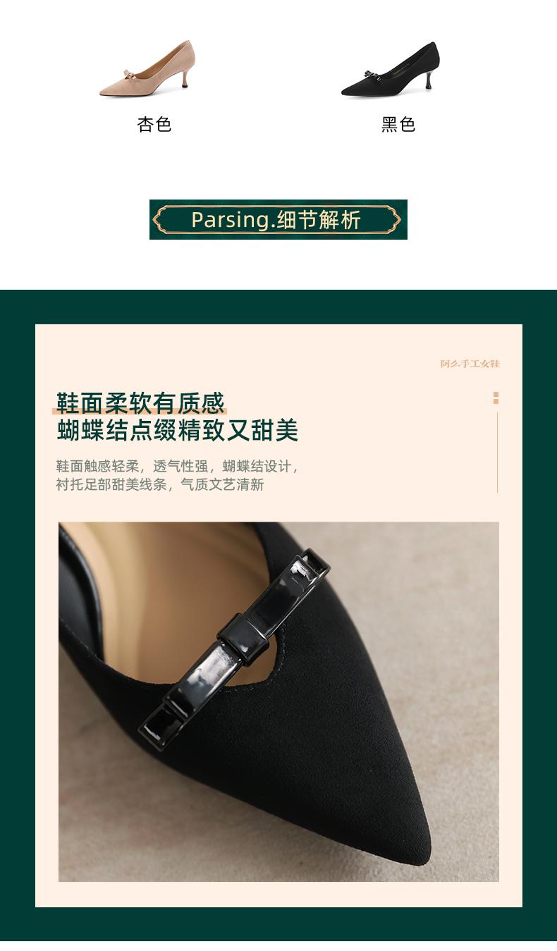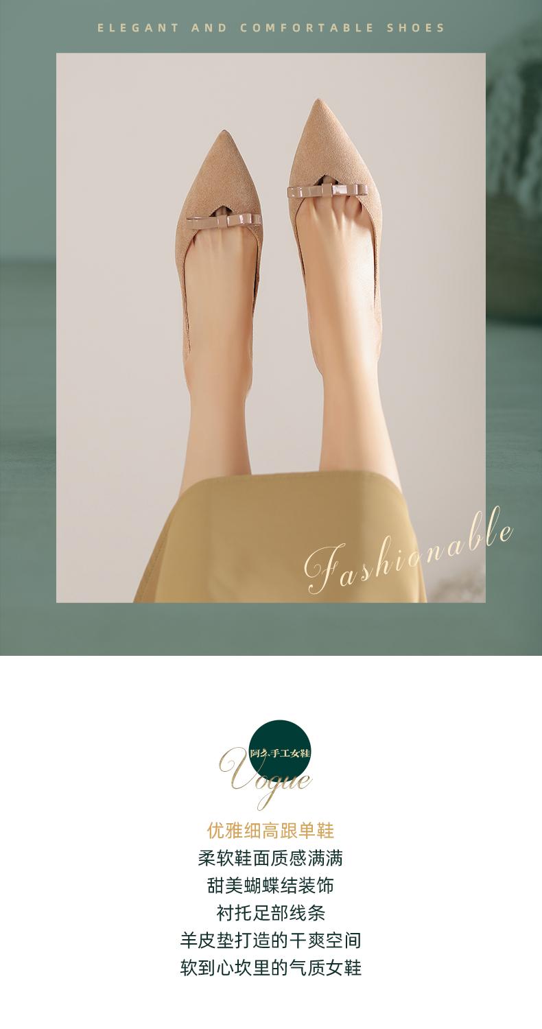 阿么手工女鞋蝴蝶结真皮浅口高跟鞋春季职业通勤镂空单鞋细跟6CM
