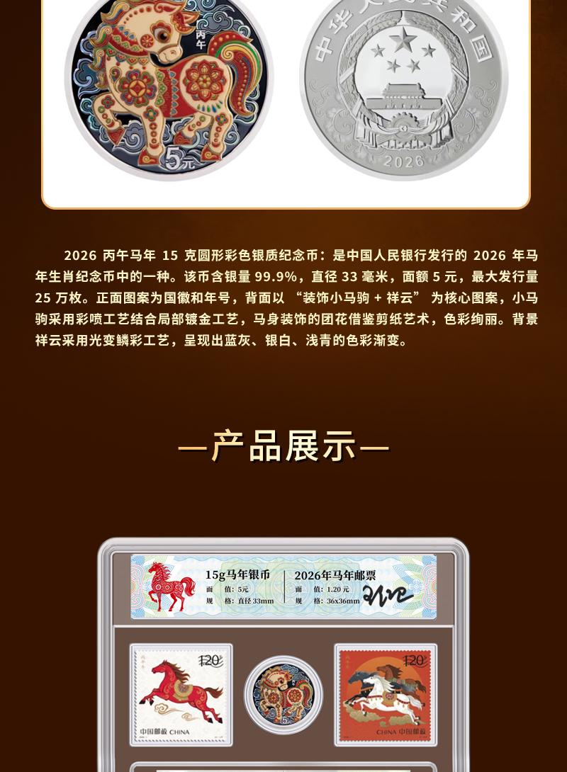 2026丙午马年银质纪念币邮票套装Ag999 15g 王红卫老师亲签