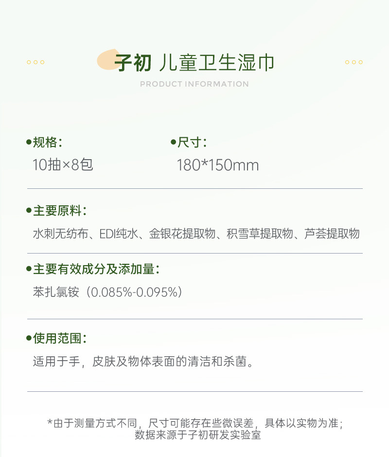 子初 儿童卫生湿巾 10抽×8包/提 180*150mm