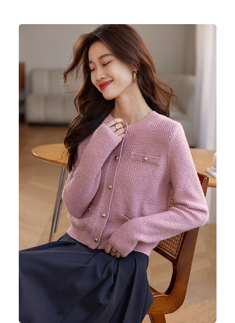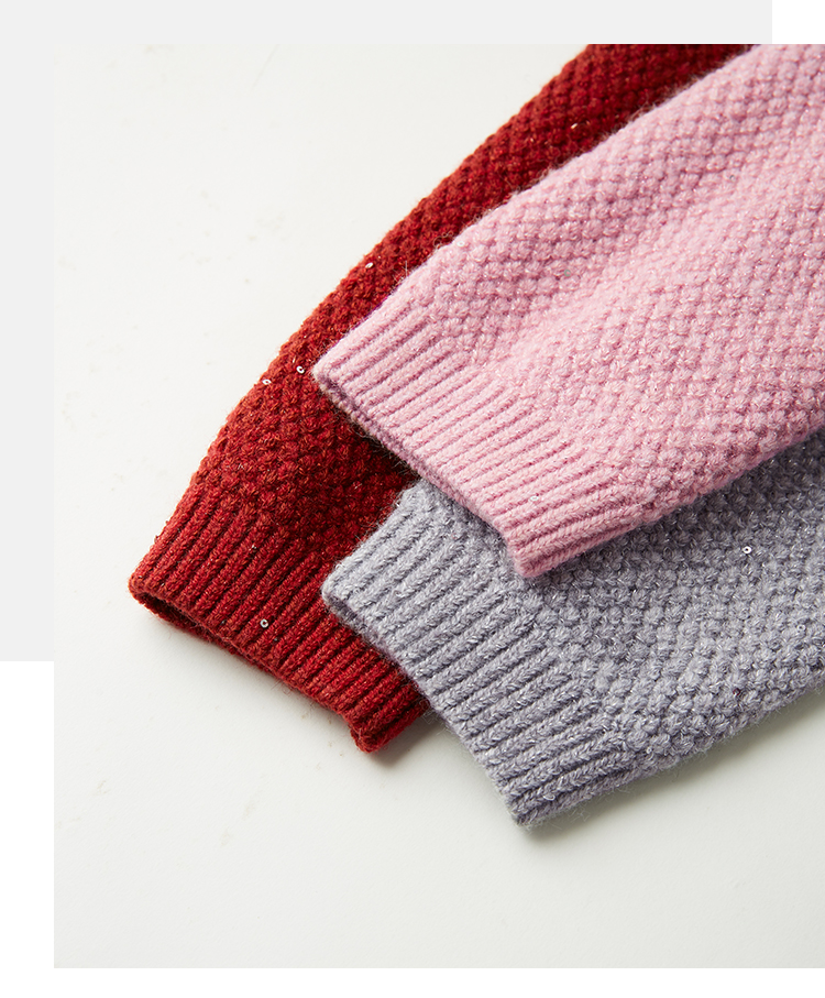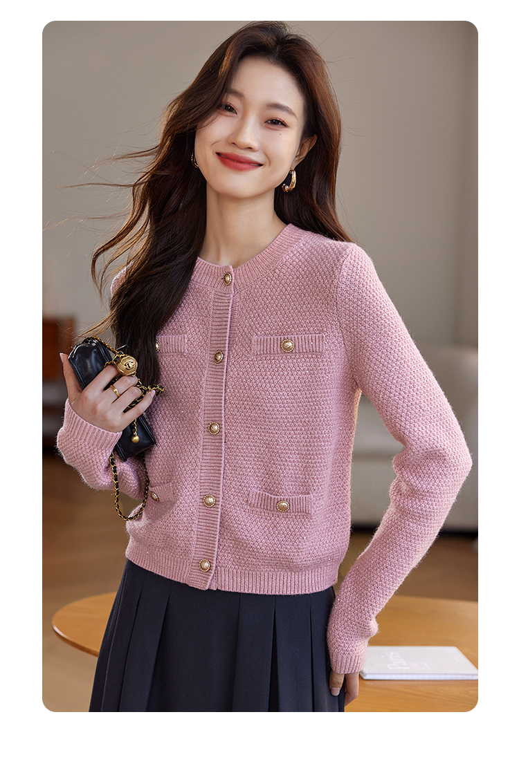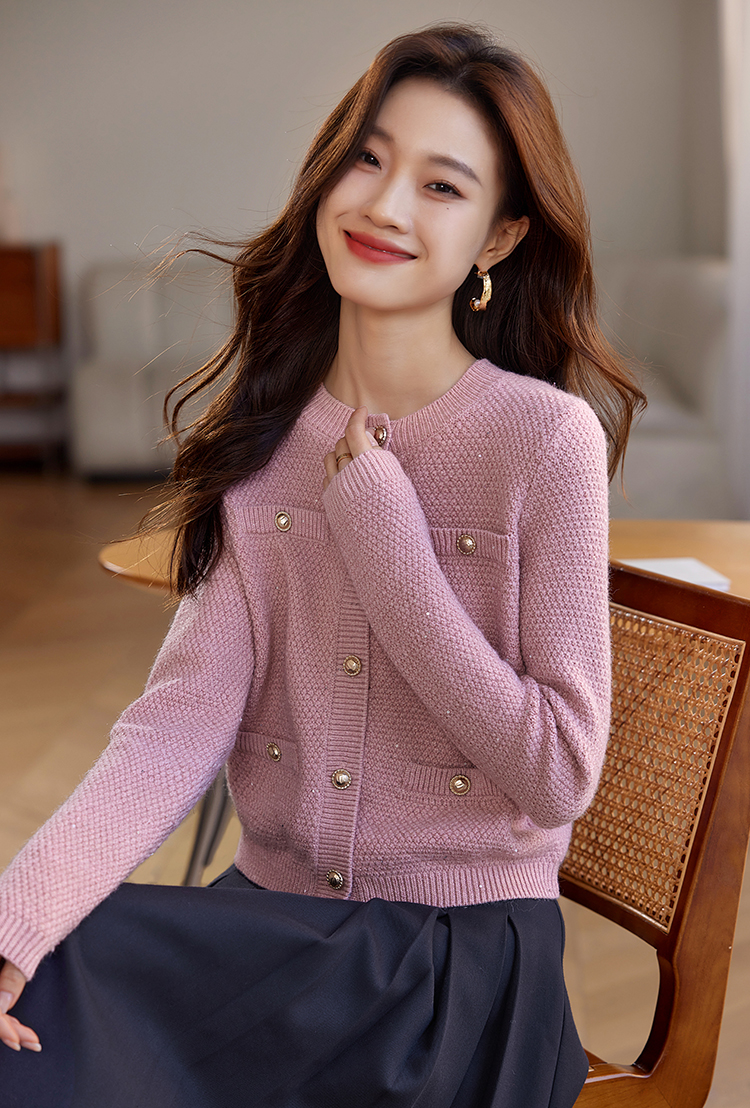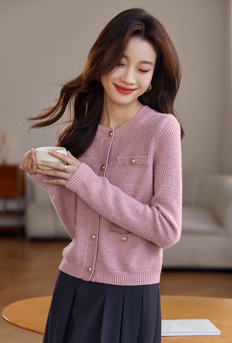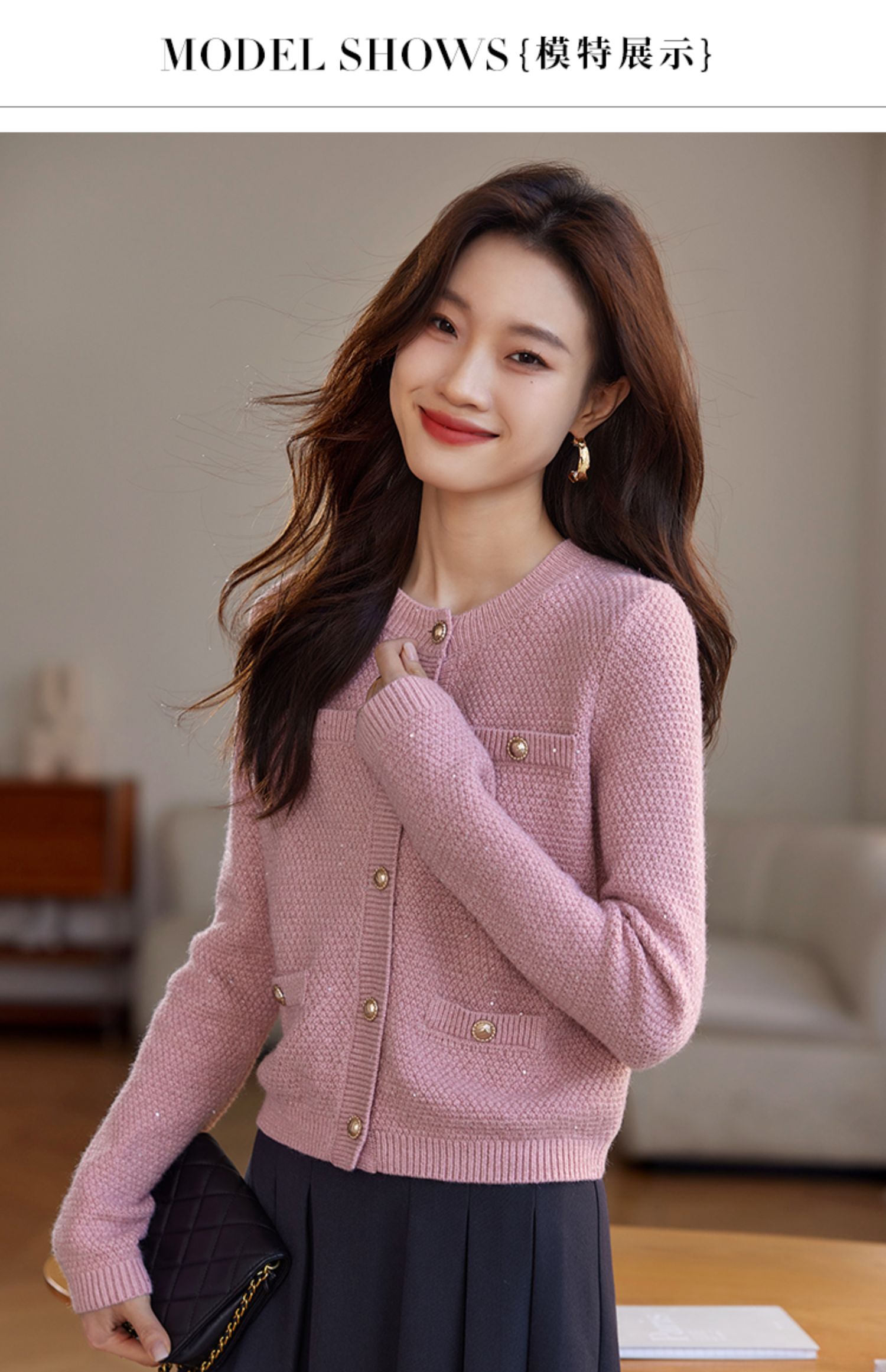 【年终特卖】熙世界小香风复古红色毛衣开衫秋冬圆领银丝针织外套