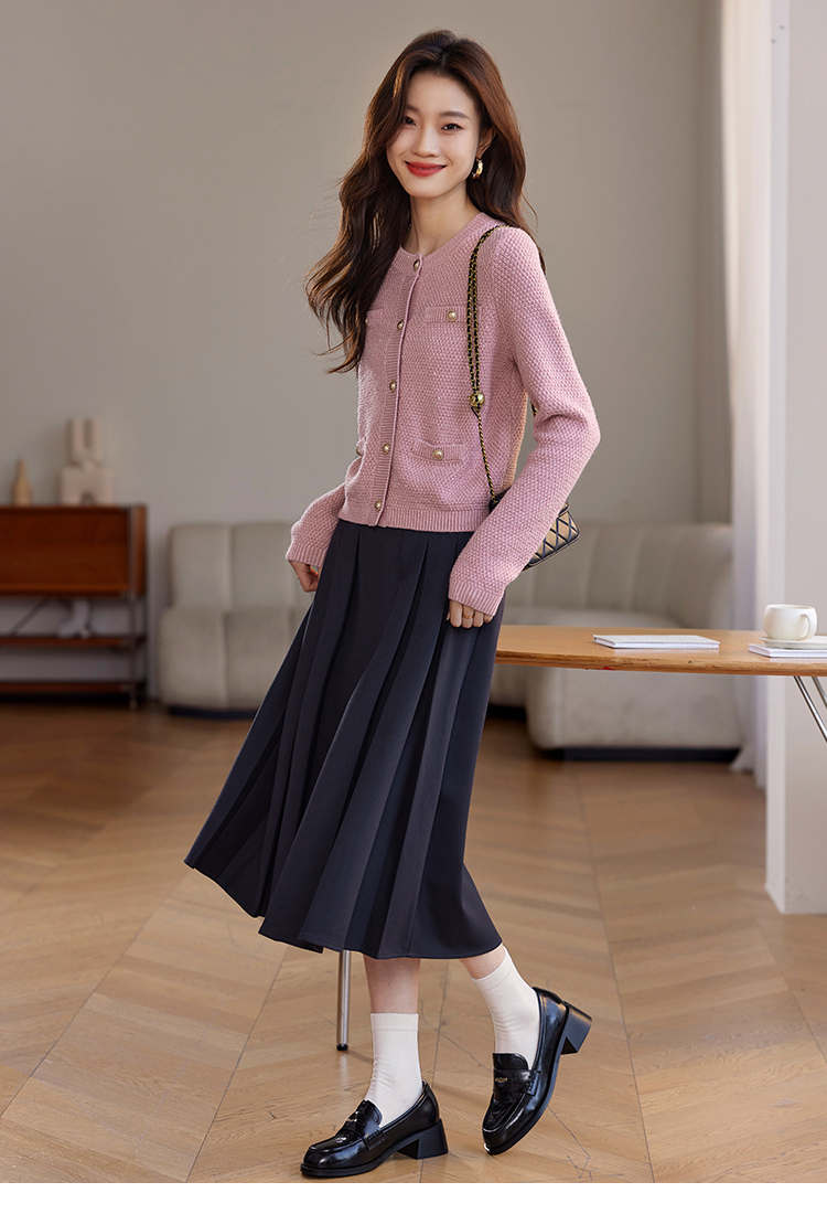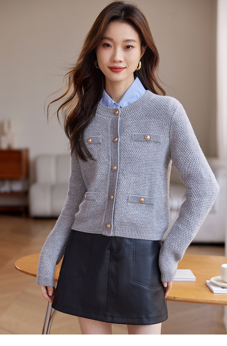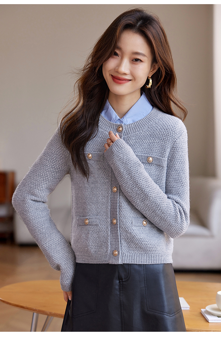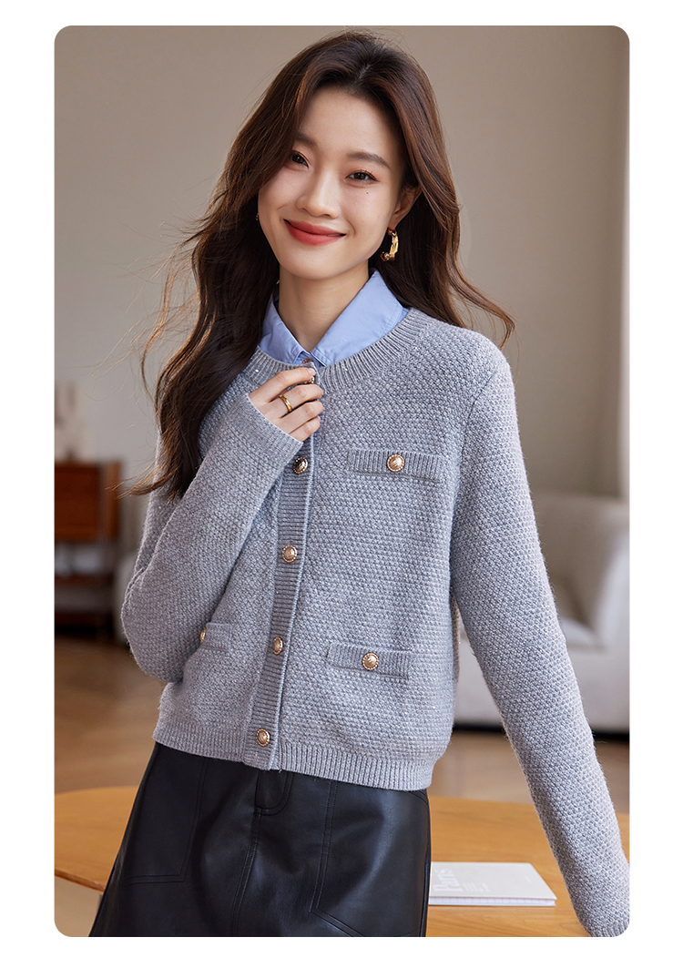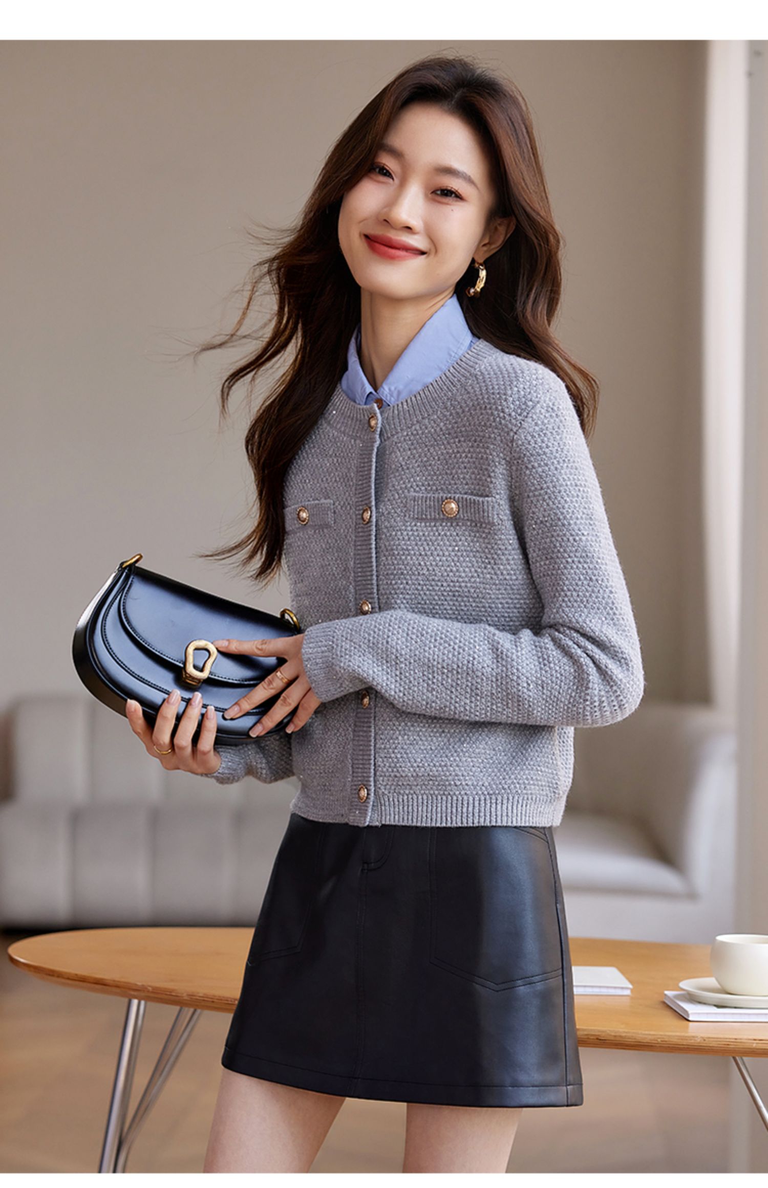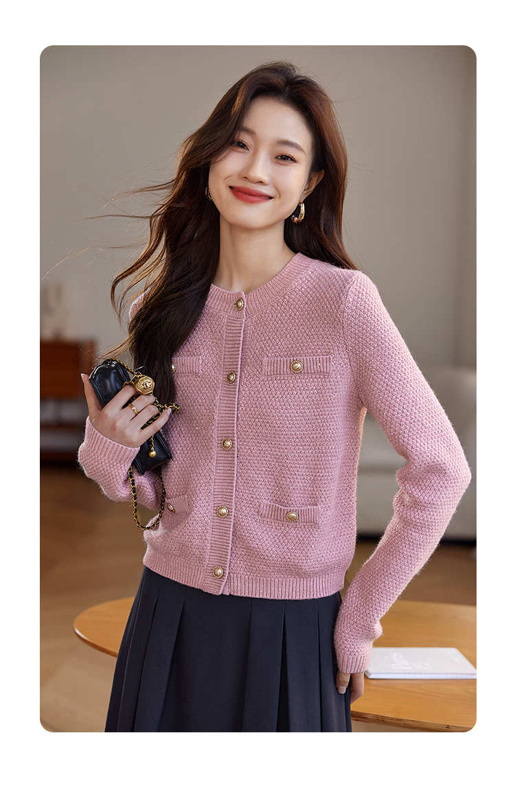 【年终特卖】熙世界小香风复古红色毛衣开衫秋冬圆领银丝针织外套