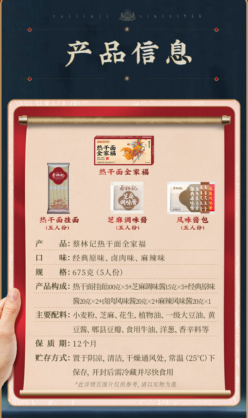 【满99-50 满199-100】蔡林记5人份全家福热干面675g