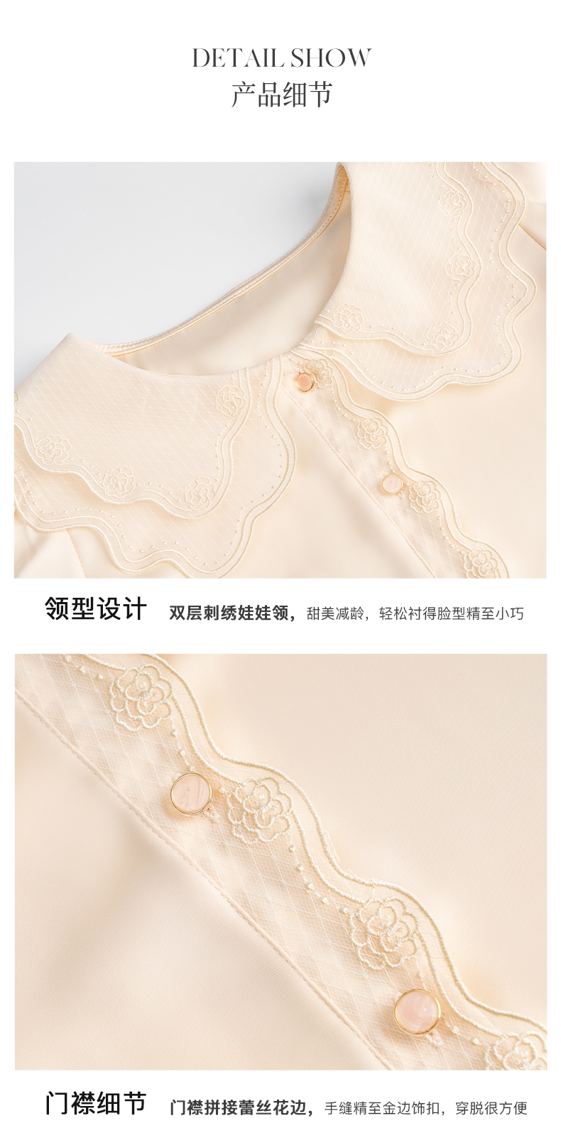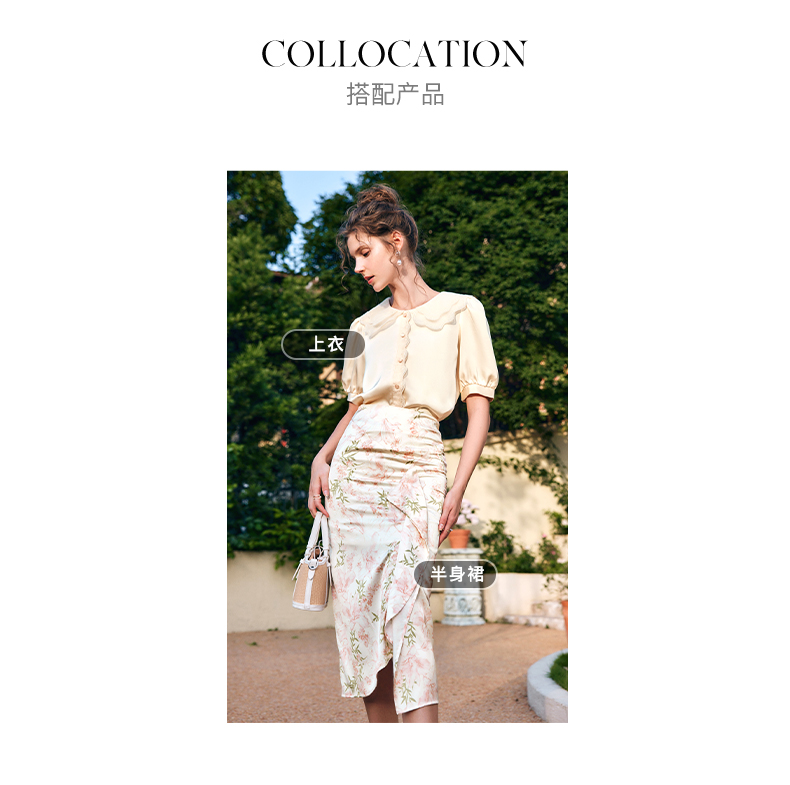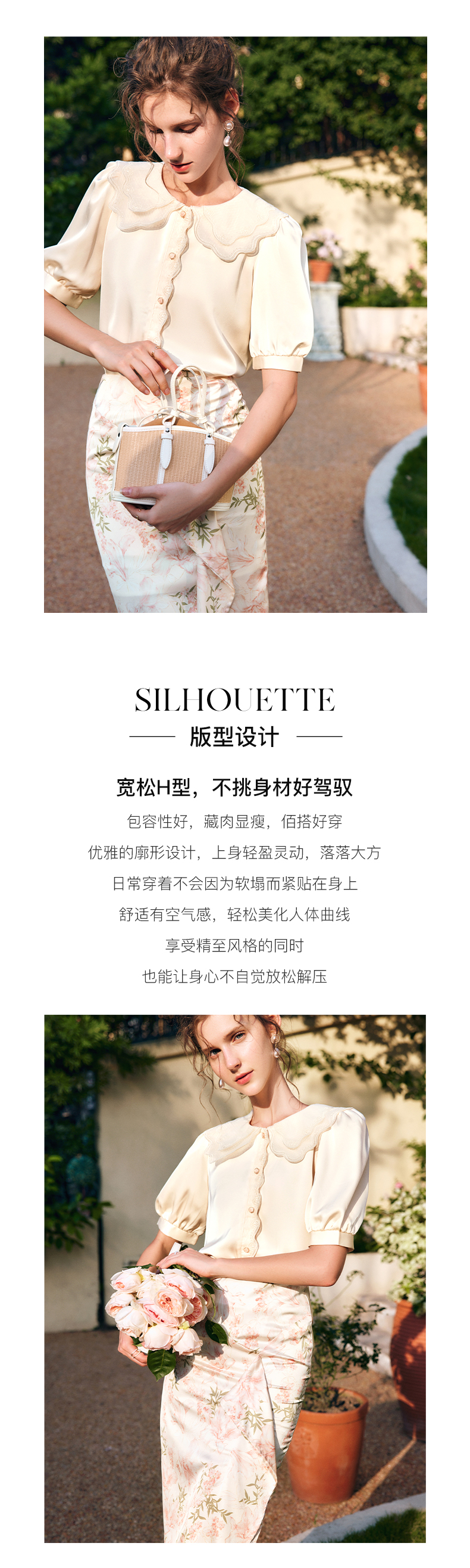 欧芮儿OLrain法式娃娃领缎面衬衫女夏季2022新款泡泡袖减龄小衫