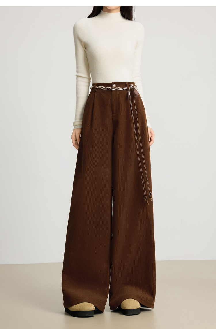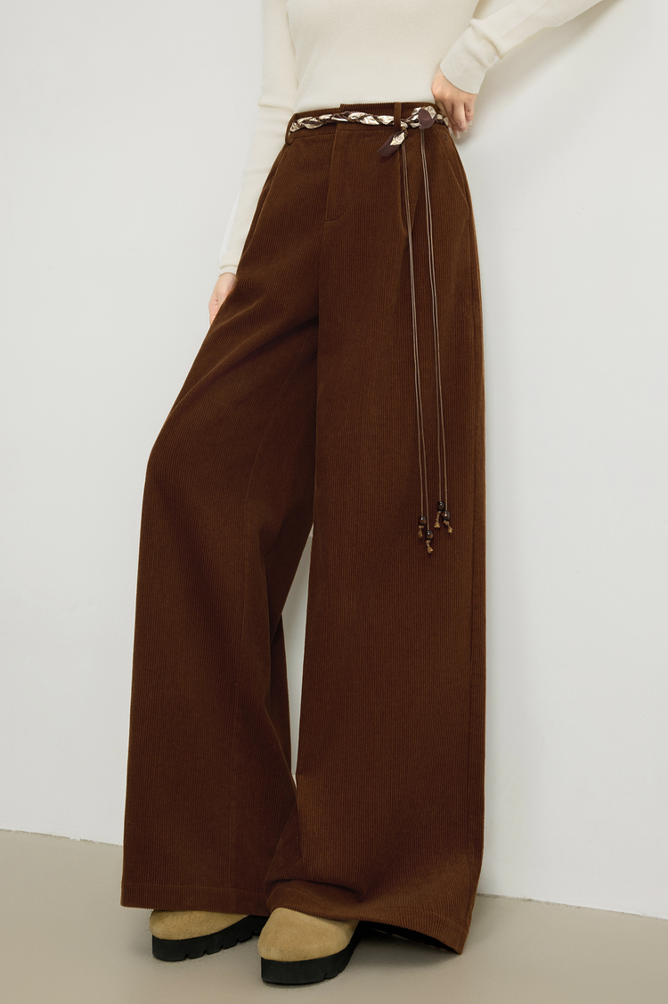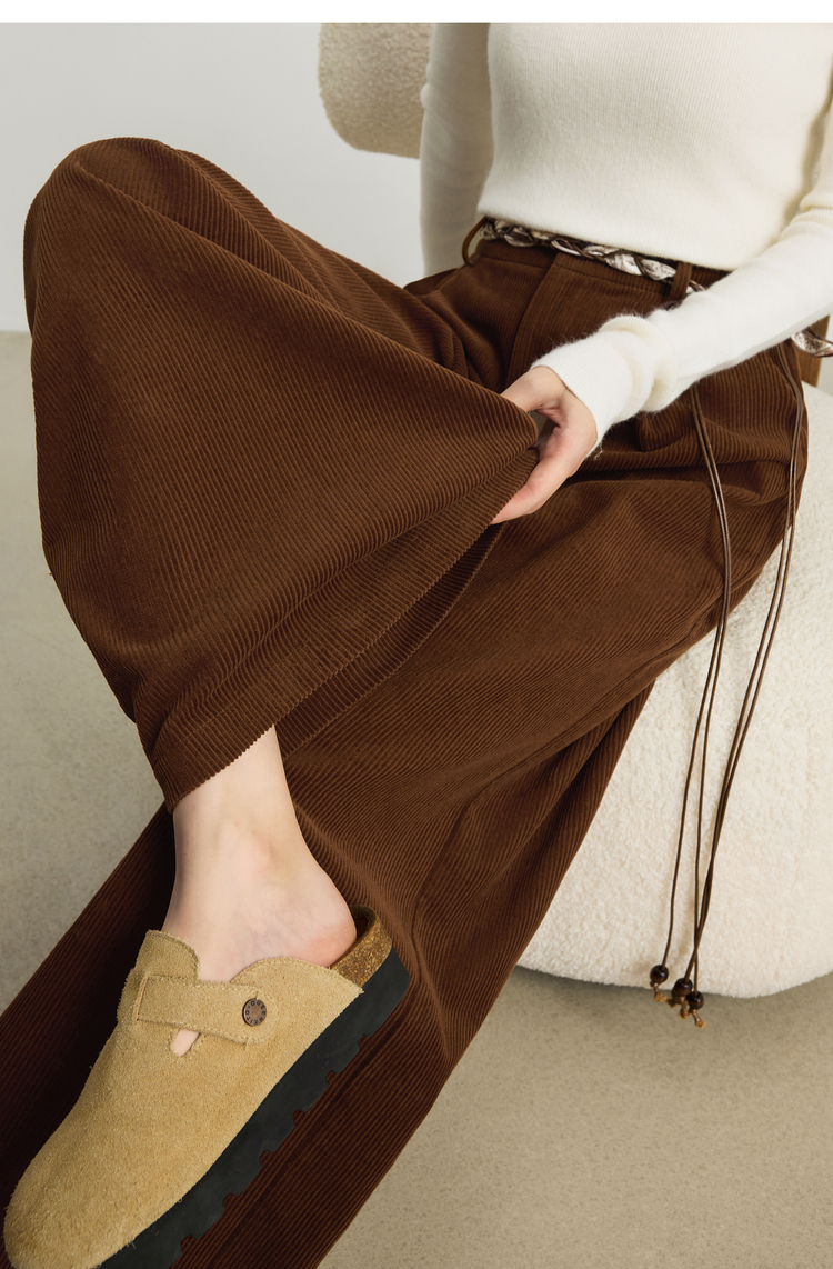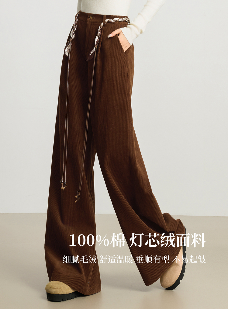 【10/23新品】熙世界复古风棕色100%棉灯芯绒阔腿裤女秋冬高腰宽松直筒休闲长裤