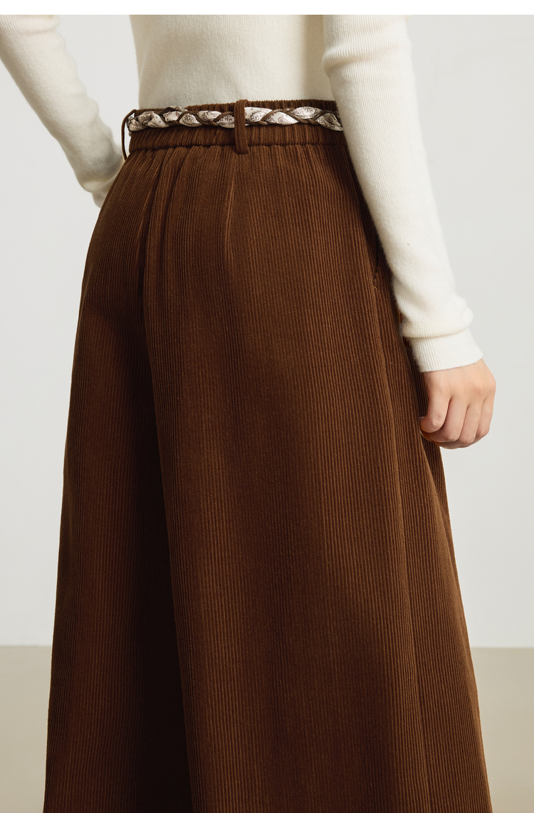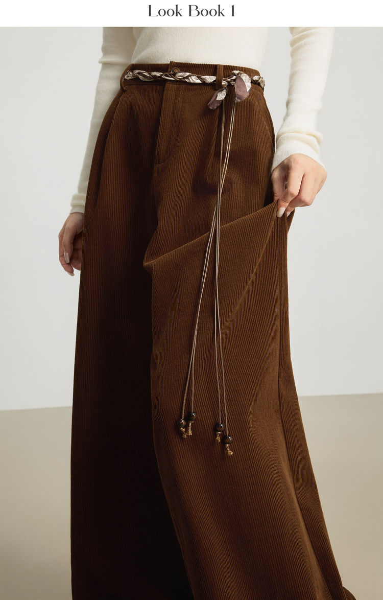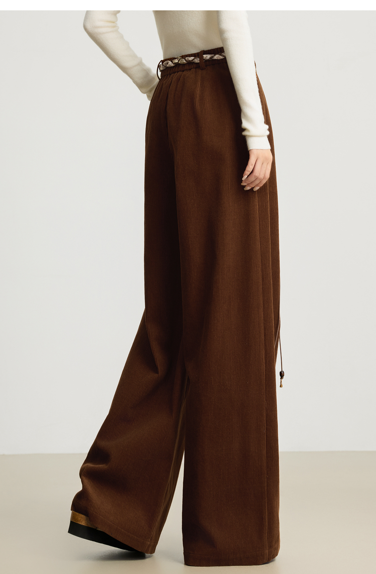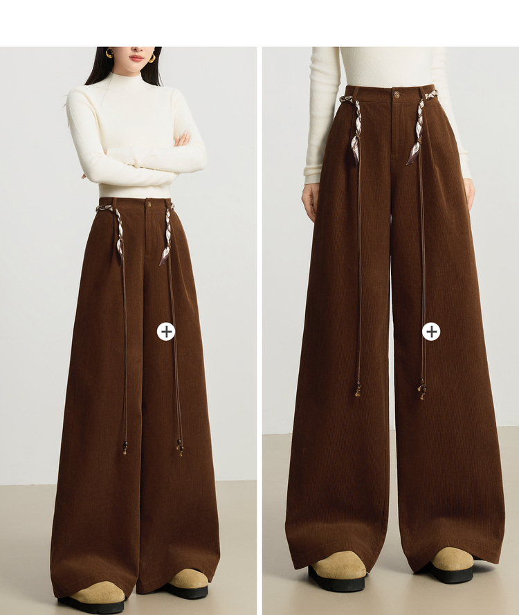 【10/23新品】熙世界复古风棕色100%棉灯芯绒阔腿裤女秋冬高腰宽松直筒休闲长裤
