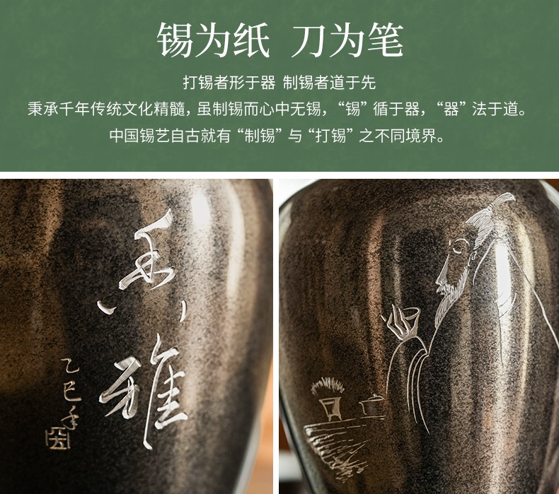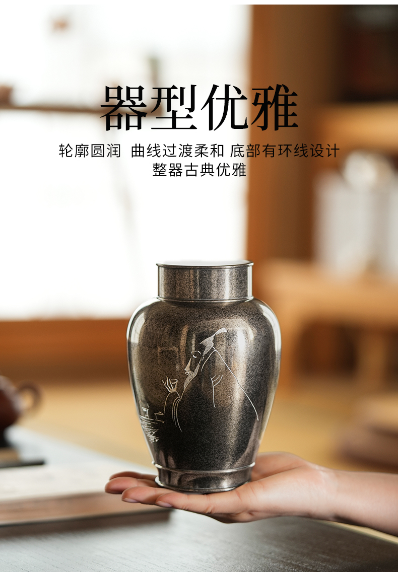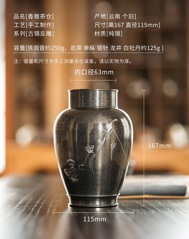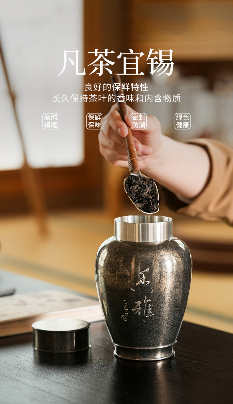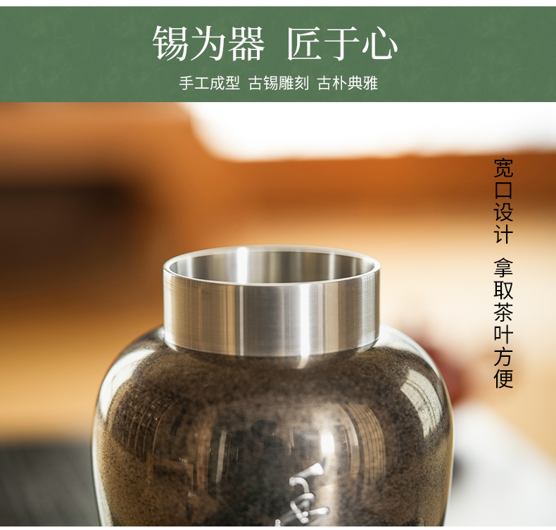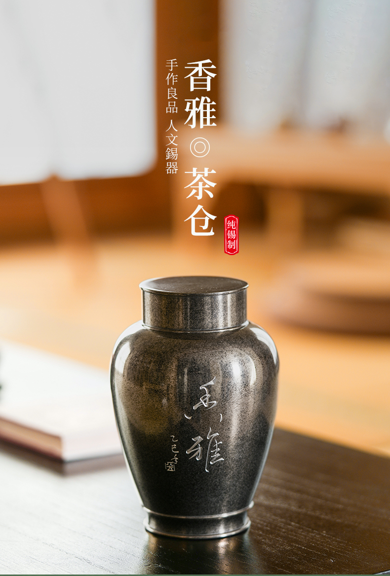 斑锡龙香雅茶仓复古中号锡罐纯锡茶叶罐密封储茶云南个旧手工锡器