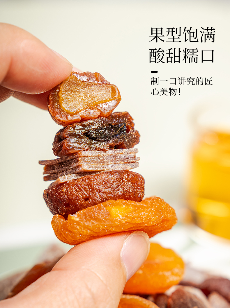 【组合1】(红杏干(180g)、黄桃梅子(50g)、陈皮梅片(70g)、葡萄梅子(50g)、冰糖山楂(150g))