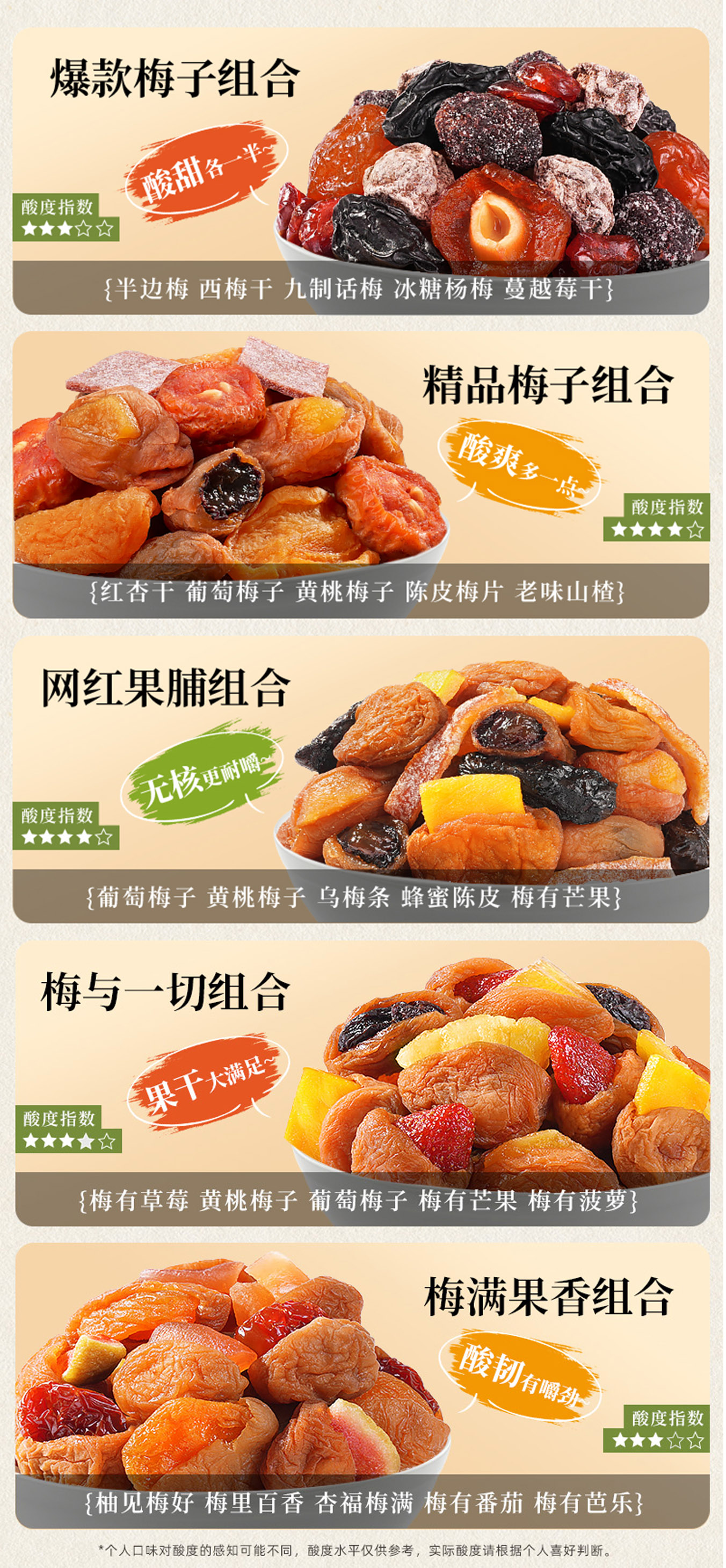 【梅子蜜饯组合】纯手工制作!皮薄肉厚,酸甜软糯,低脂解馋!多款蜜饯组合,颗颗真材实料!原汁原味,真的超级解腻!