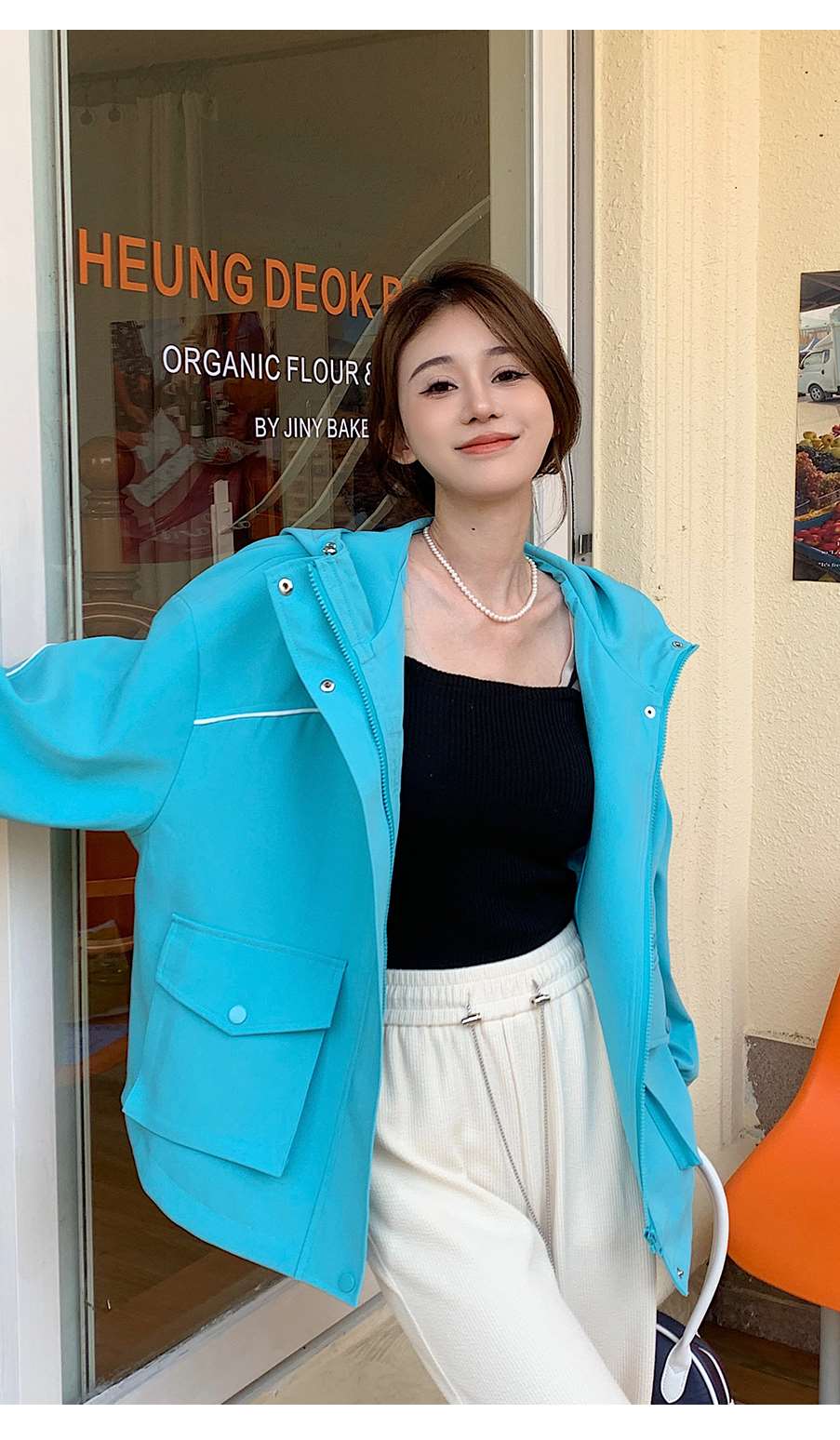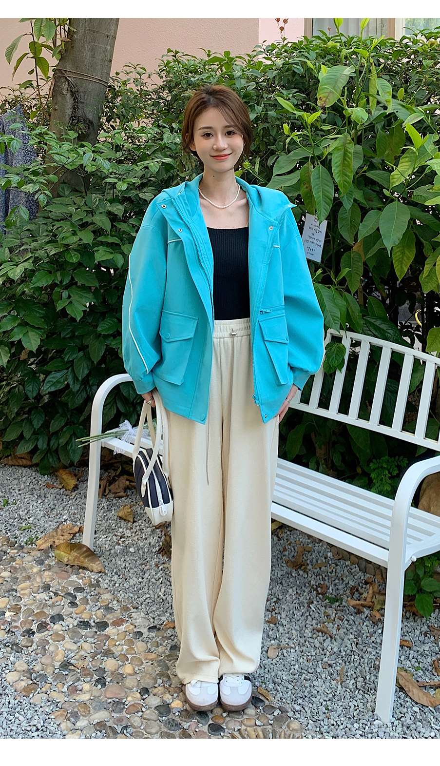 P&X设计师女装 2023春季新款 短款风衣学生连帽 823119774 绿色