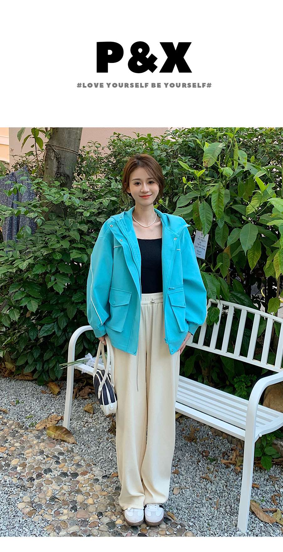 P&X设计师女装 休闲运动宽松连帽渐变色短款外套 824213378 绿色