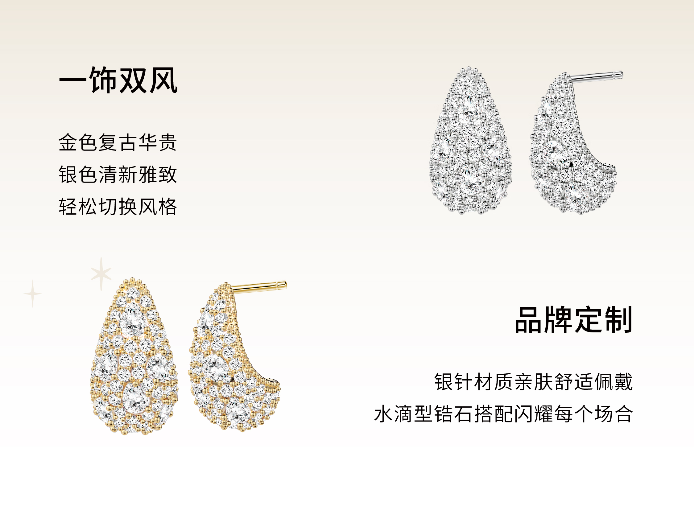 【滴水成金】璀璨闪耀耳钉·金银双色