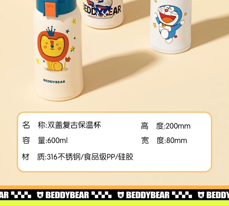 杯具熊保温杯儿童316不锈钢高颜值女杯子便携可爱小学生吸管水杯