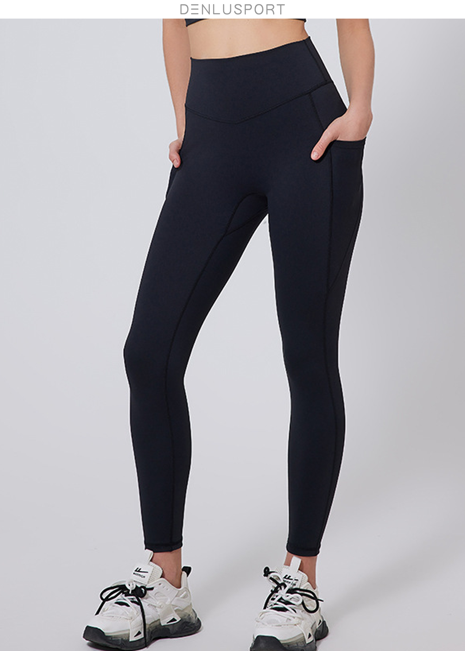 跨境原单双面磨毛高腰提臀瑜伽健身裤双测口袋设计时尚休闲DK95082