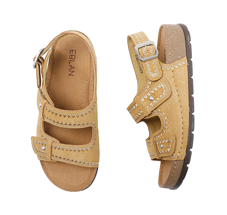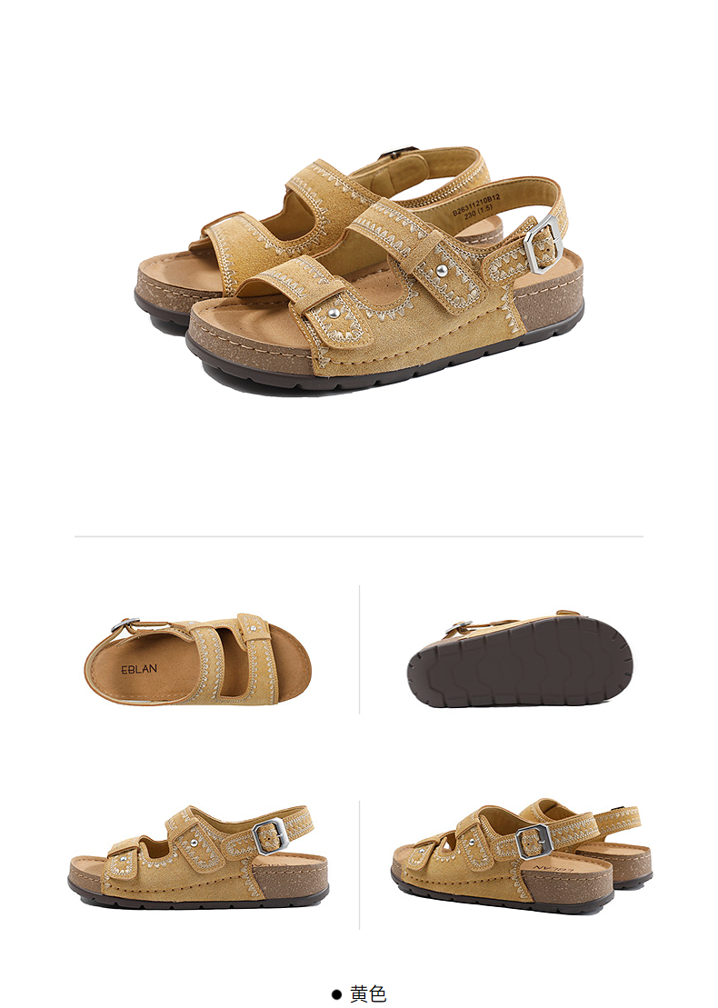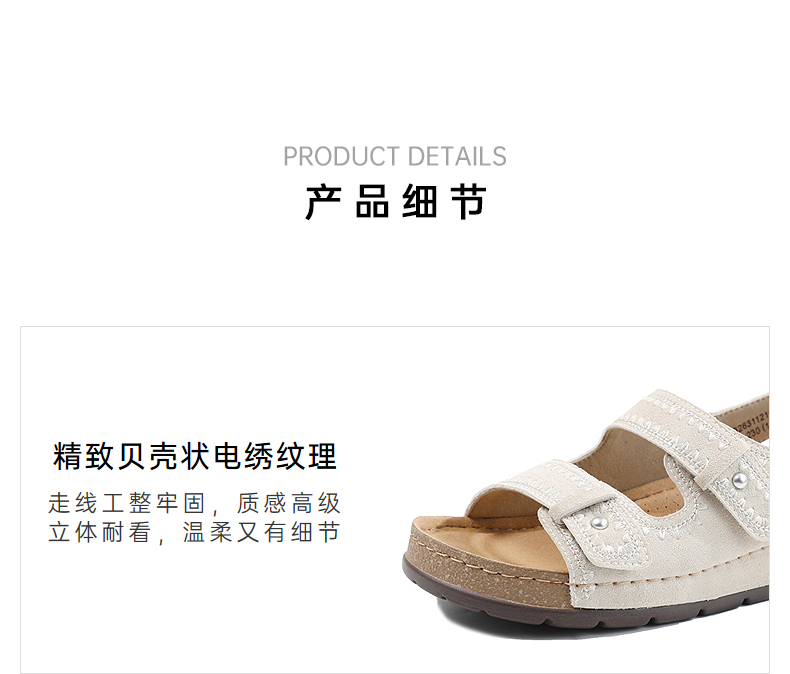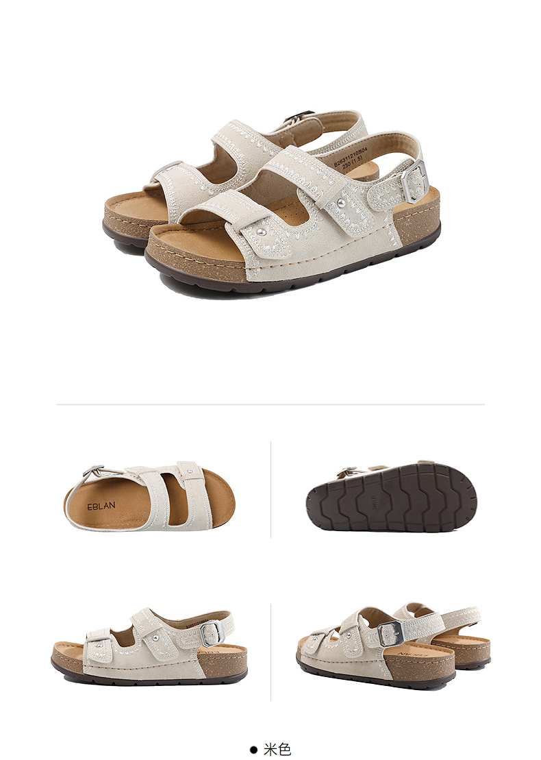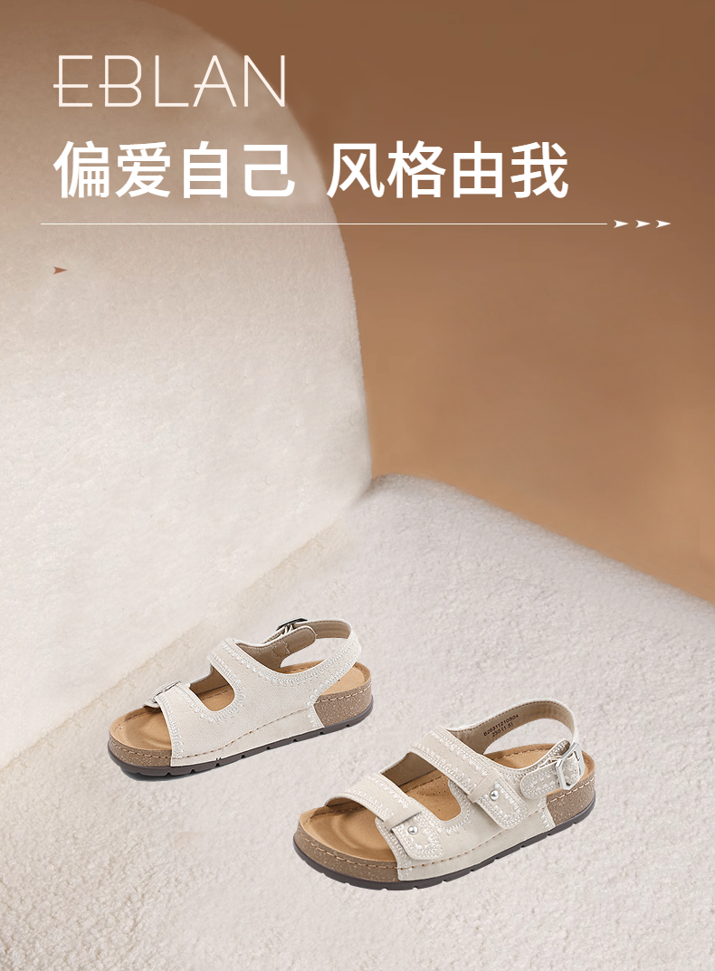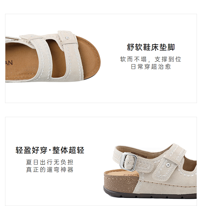 伊伴2026夏季假日田园风贝壳电绣超轻勃肯凉鞋B26311210