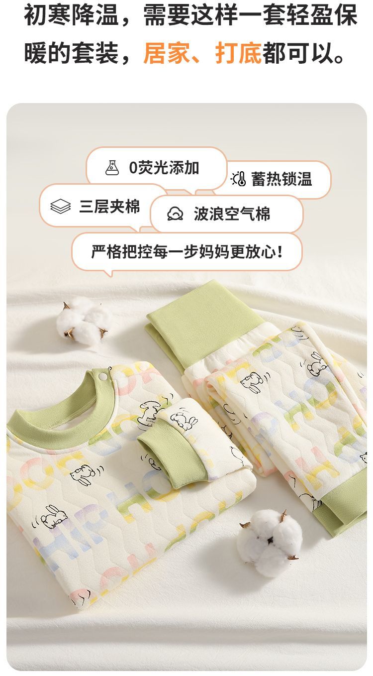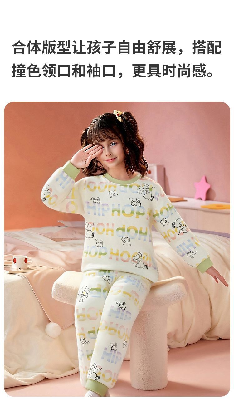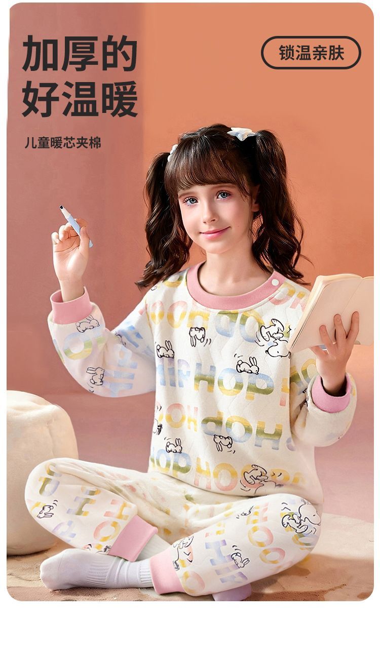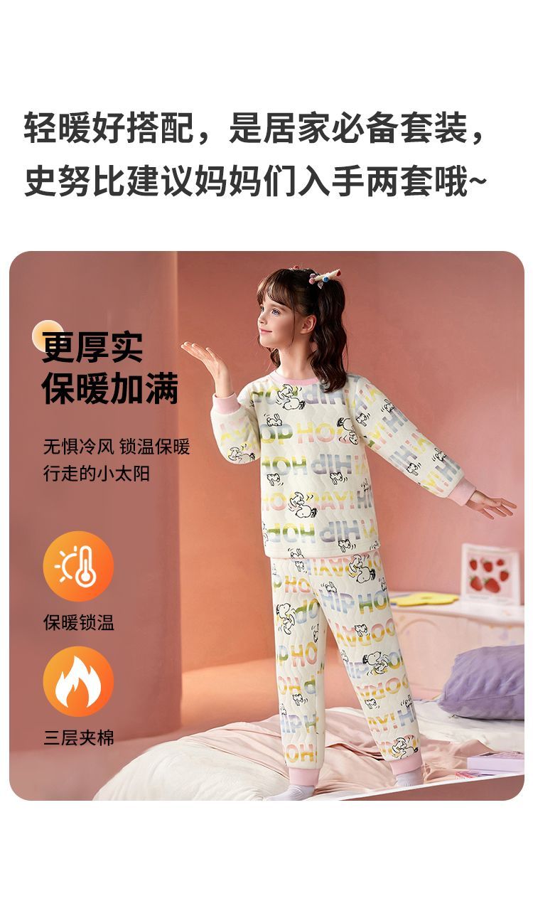 【90-130】【三层夹棉】【史努比】女童夹棉保暖内衣套装
