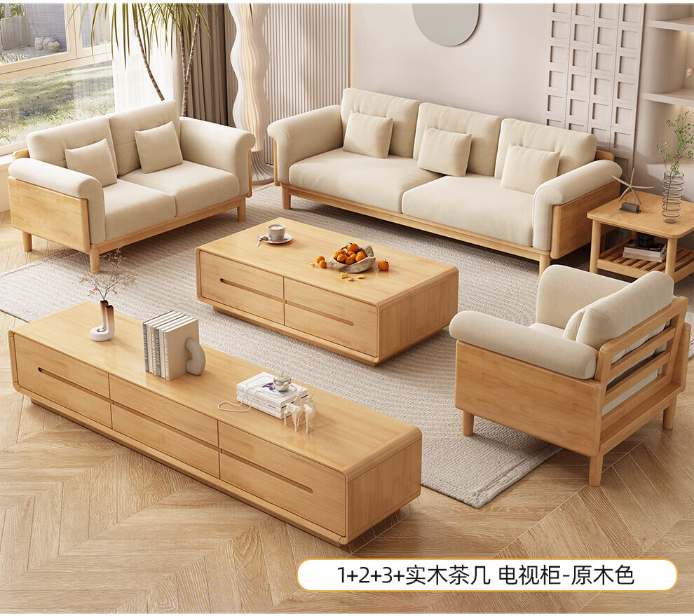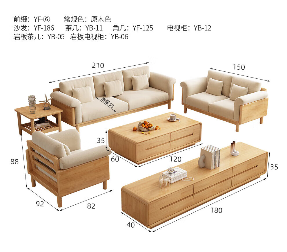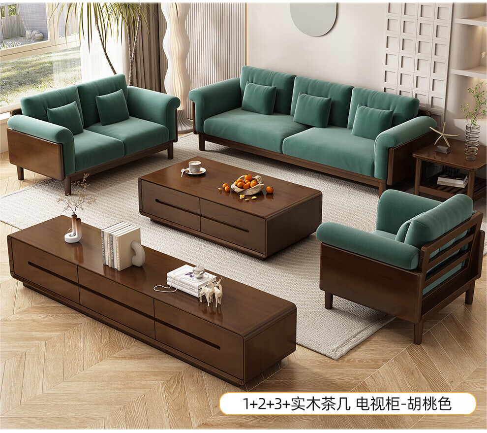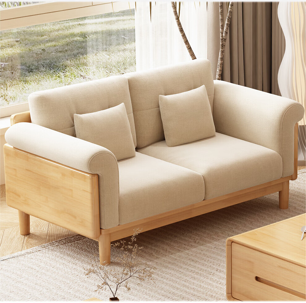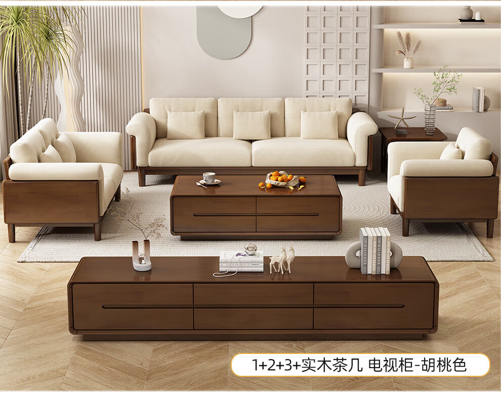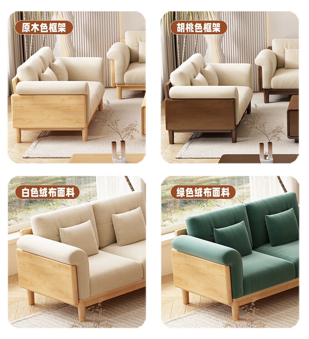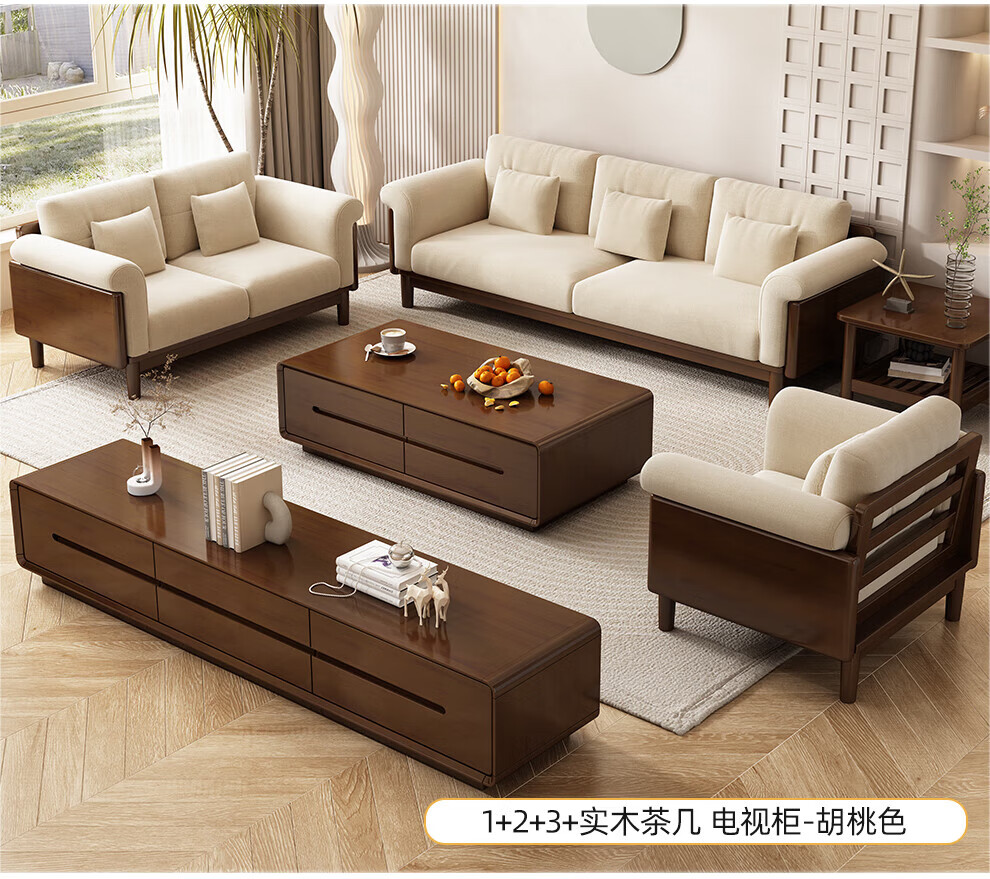实木布艺沙发1186#胡桃色+白色面料(齐)