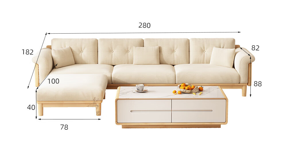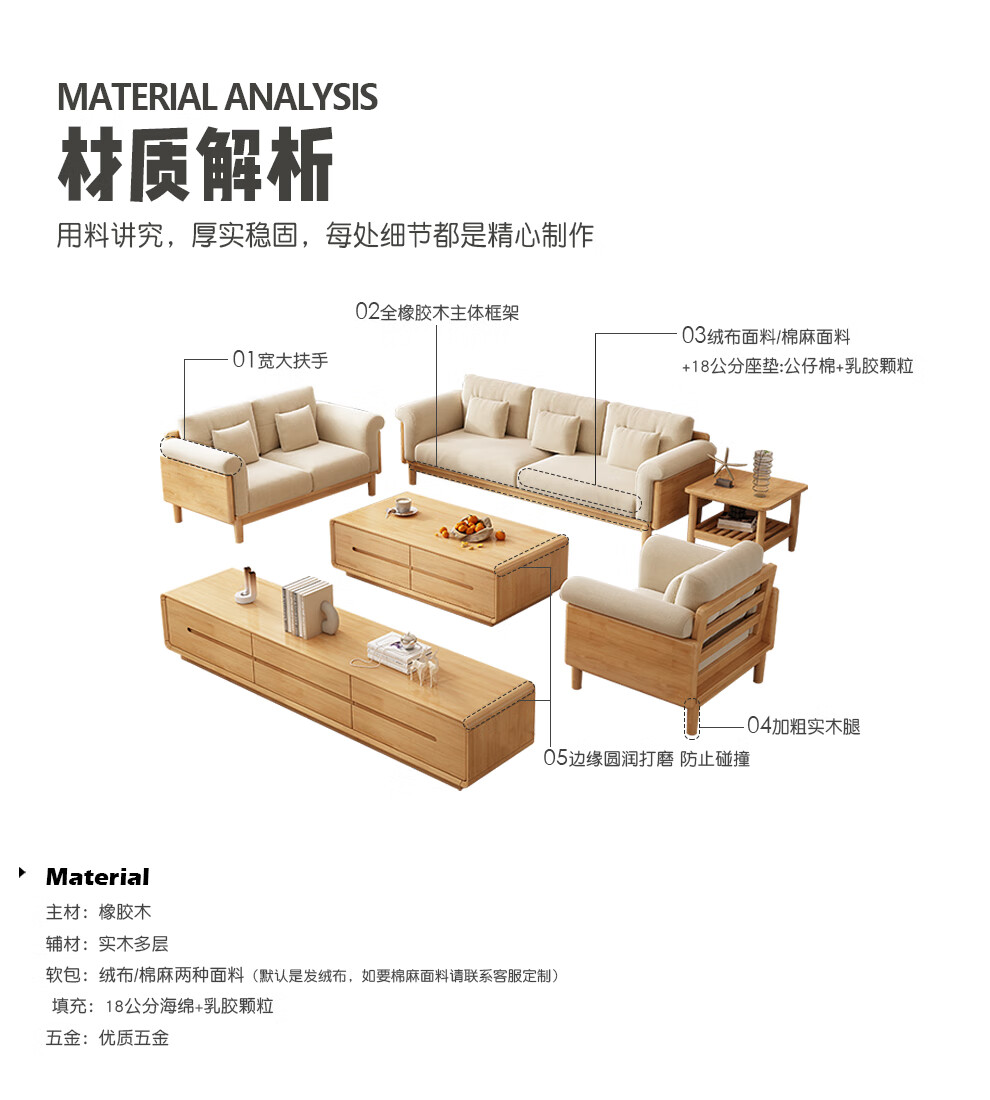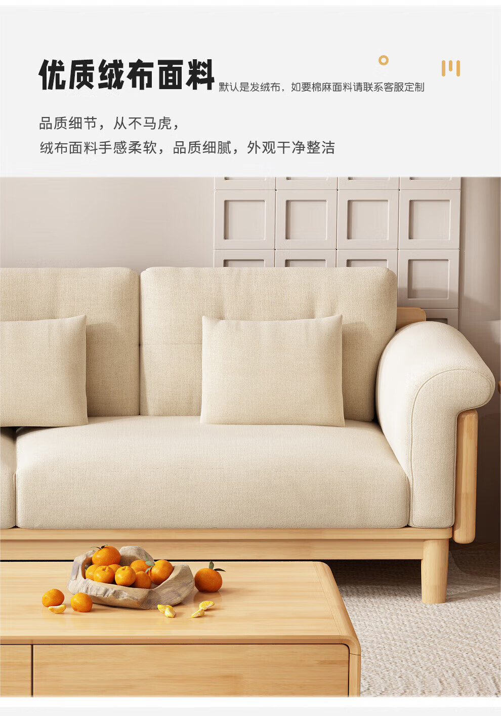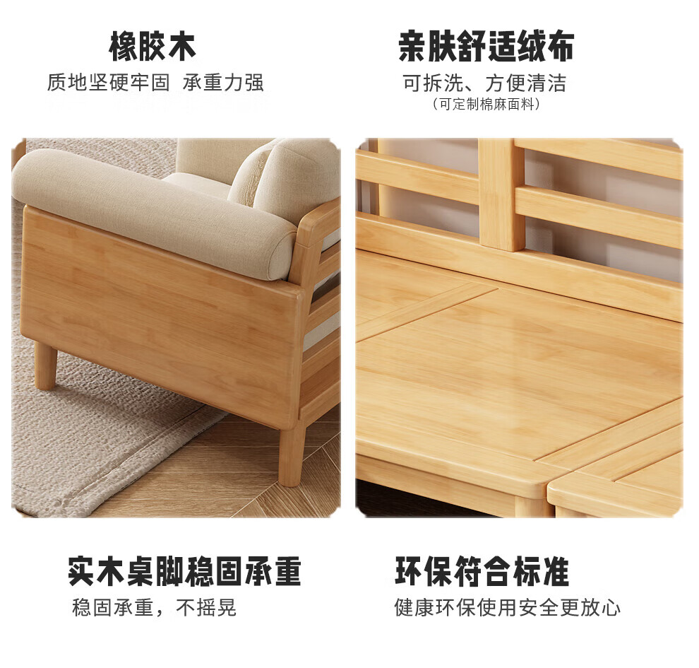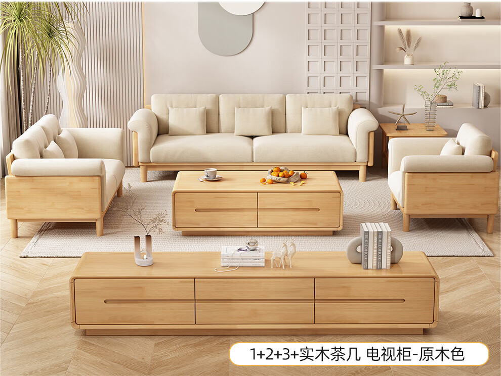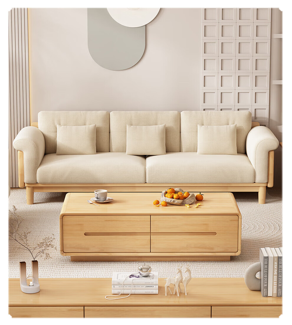 实木布艺沙发1186#胡桃色+白色面料(齐)