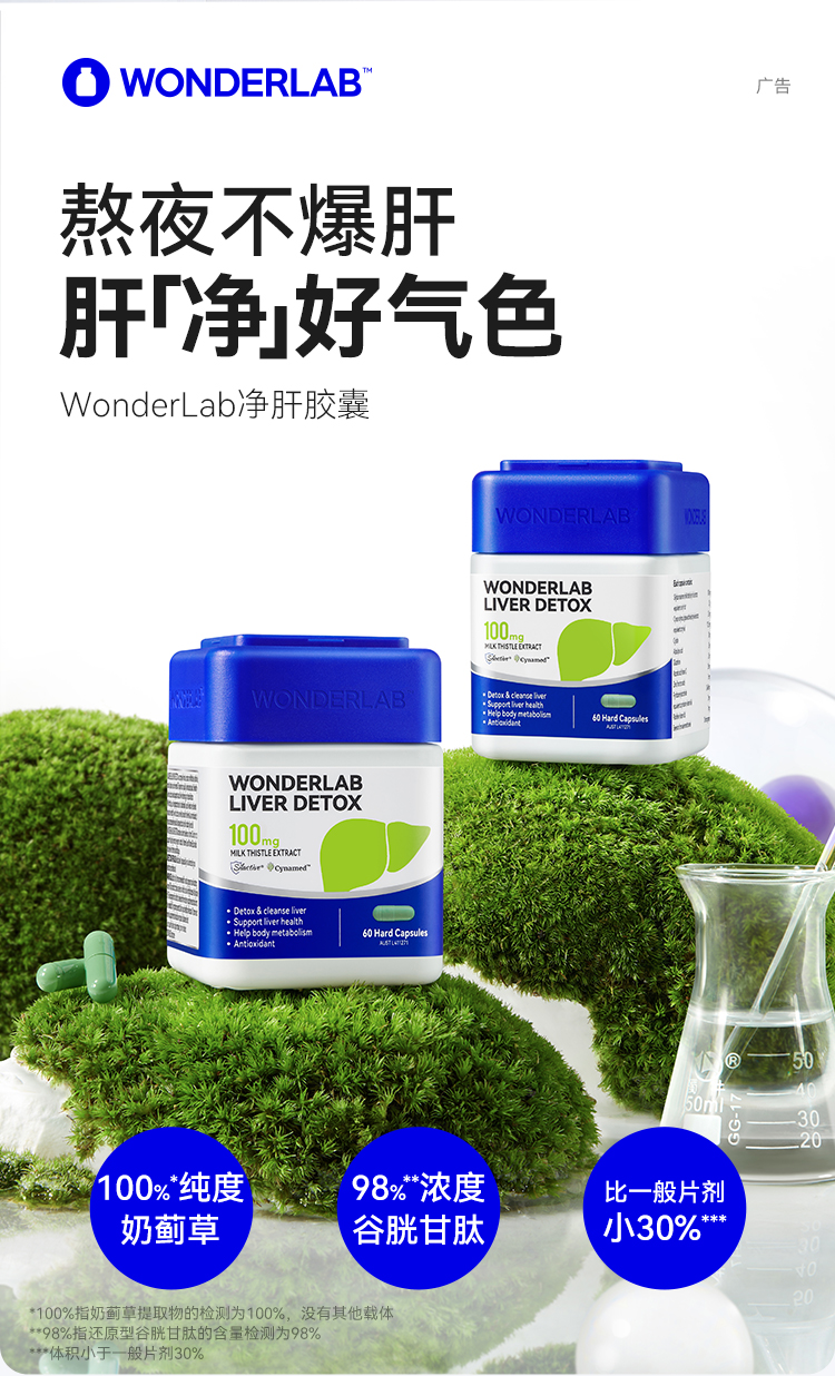 【跨境】【保税仓直发】万益蓝 WonderLab 奶蓟草胶囊 护肝熬夜外卖谷胱甘肽朝鲜蓟应愁晚睡宵夜
