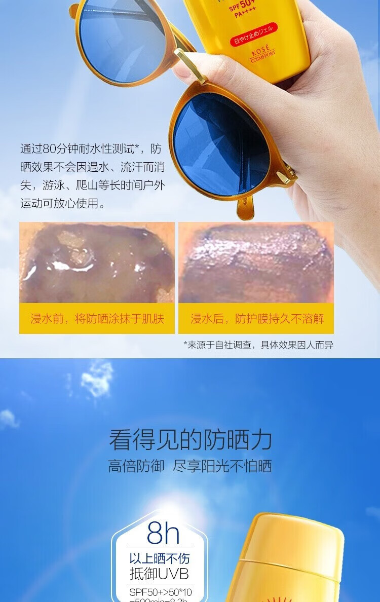 日本高丝SUNCUT防水防晒啫喱100g/117864 耐水耐汗防晒无忧SPF50+
