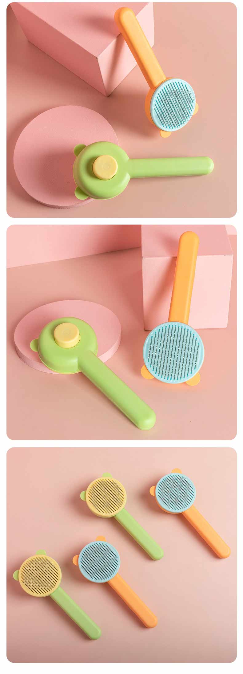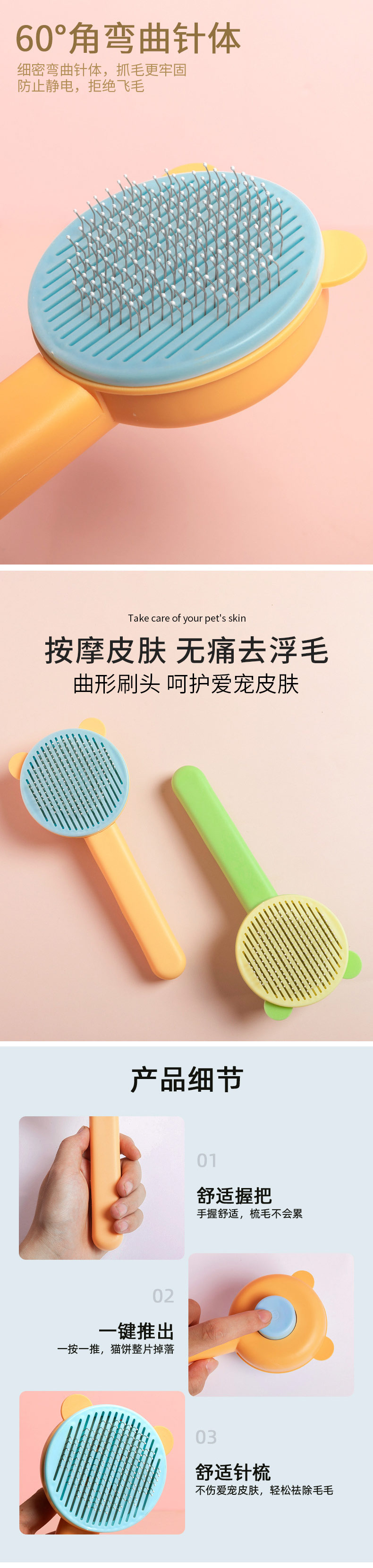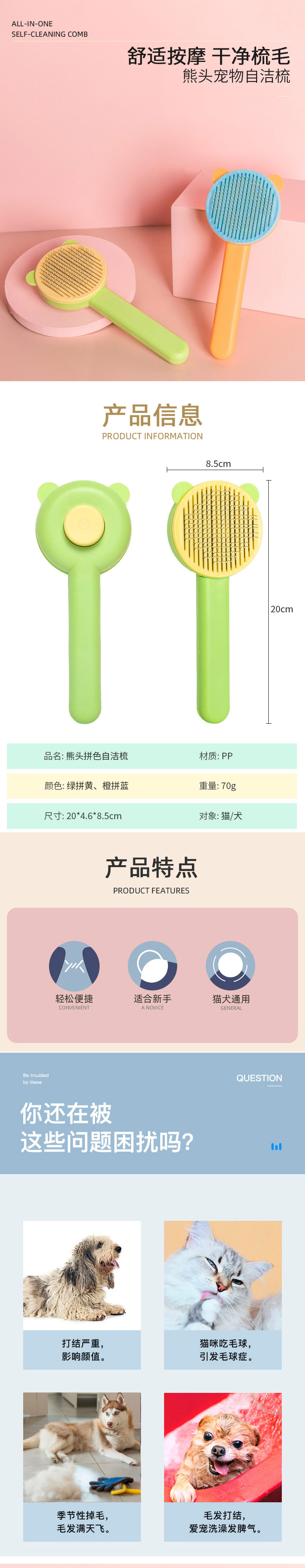 新款熊头拼色自洁梳 祛毛梳 按摩去浮毛宠物用品批发