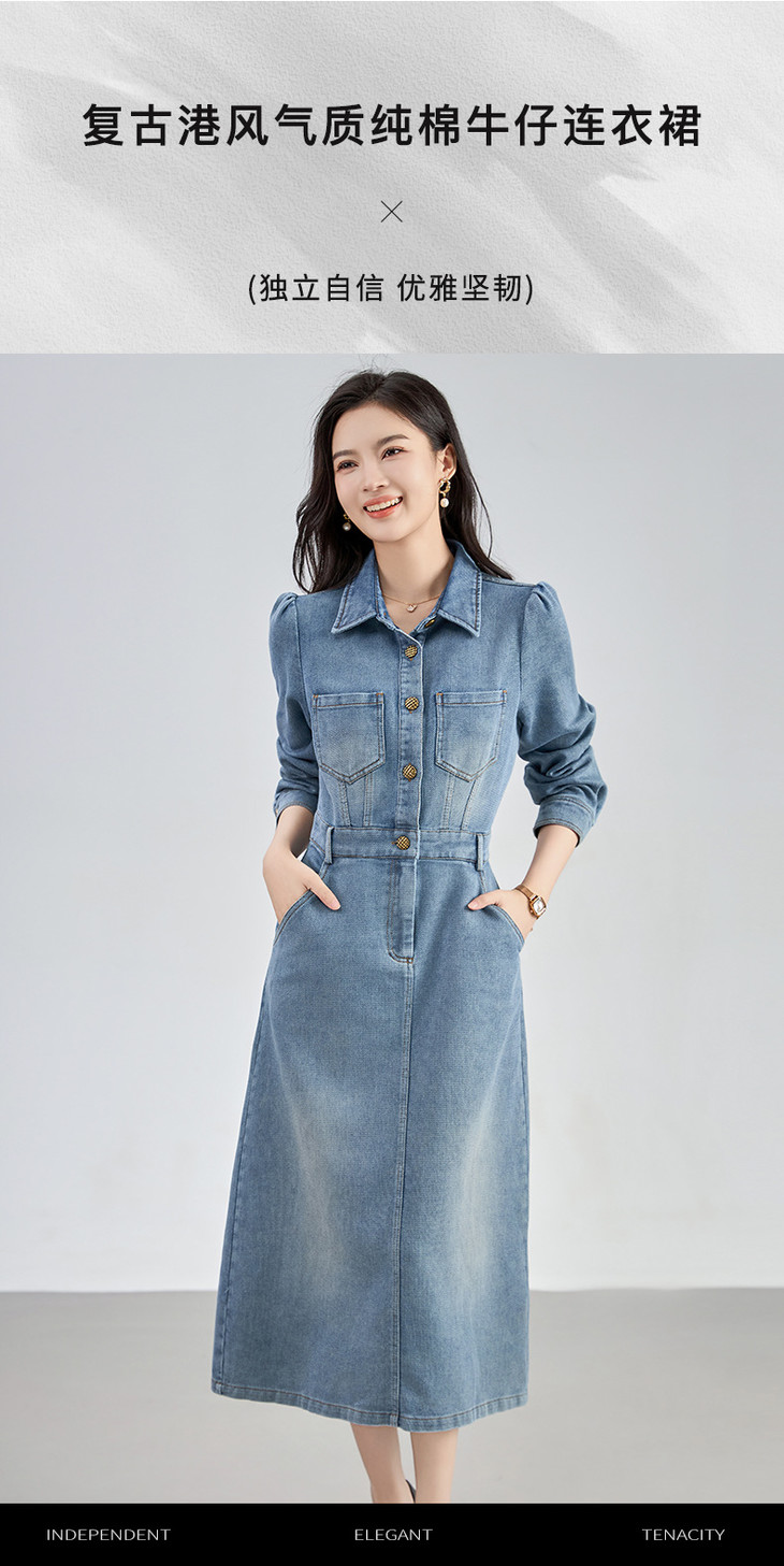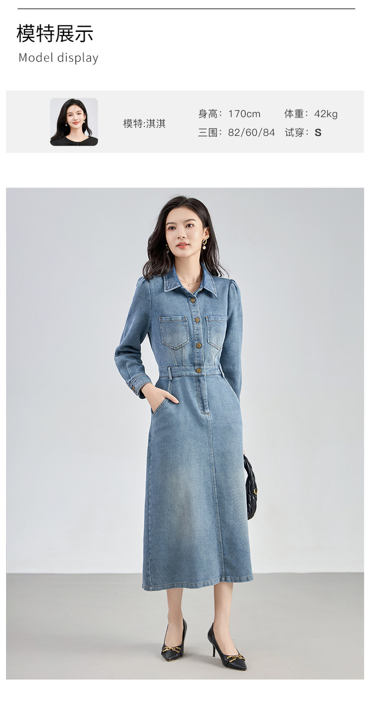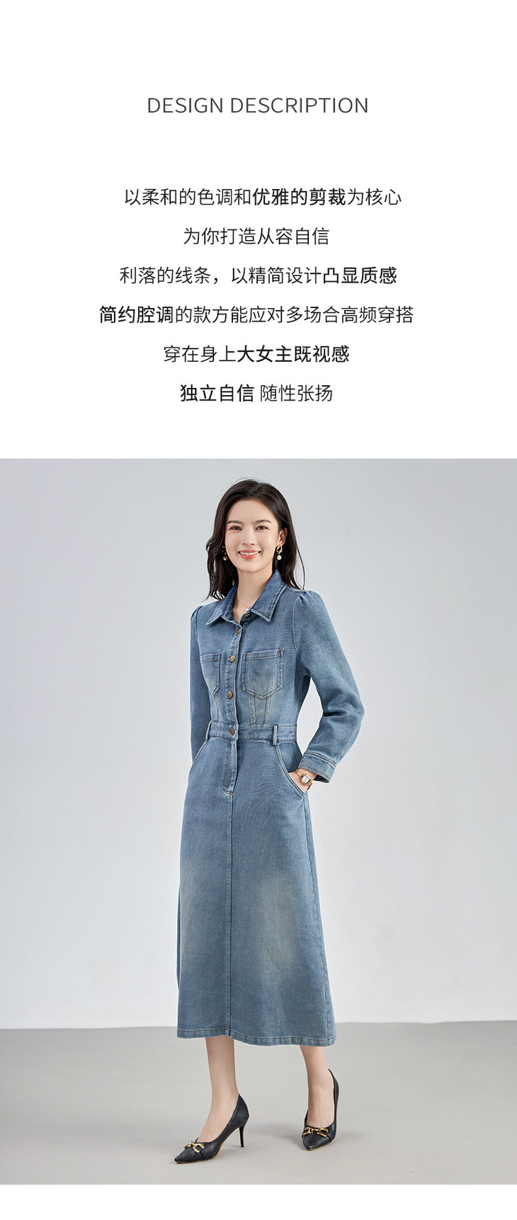 纯棉翻领中长款水洗牛仔裙WLZD2429501