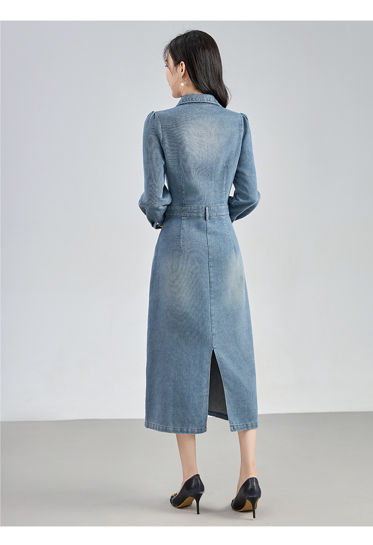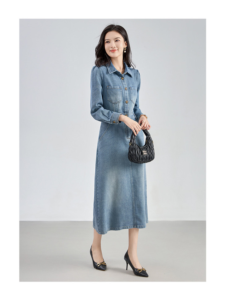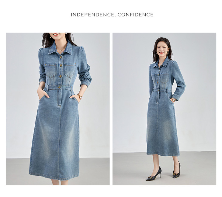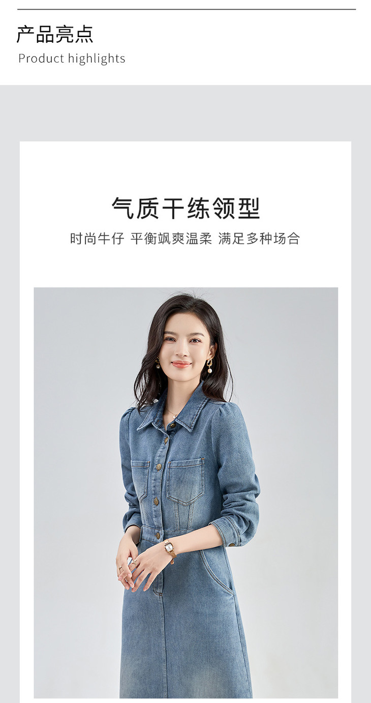 纯棉翻领中长款水洗牛仔裙WLZD2429501
