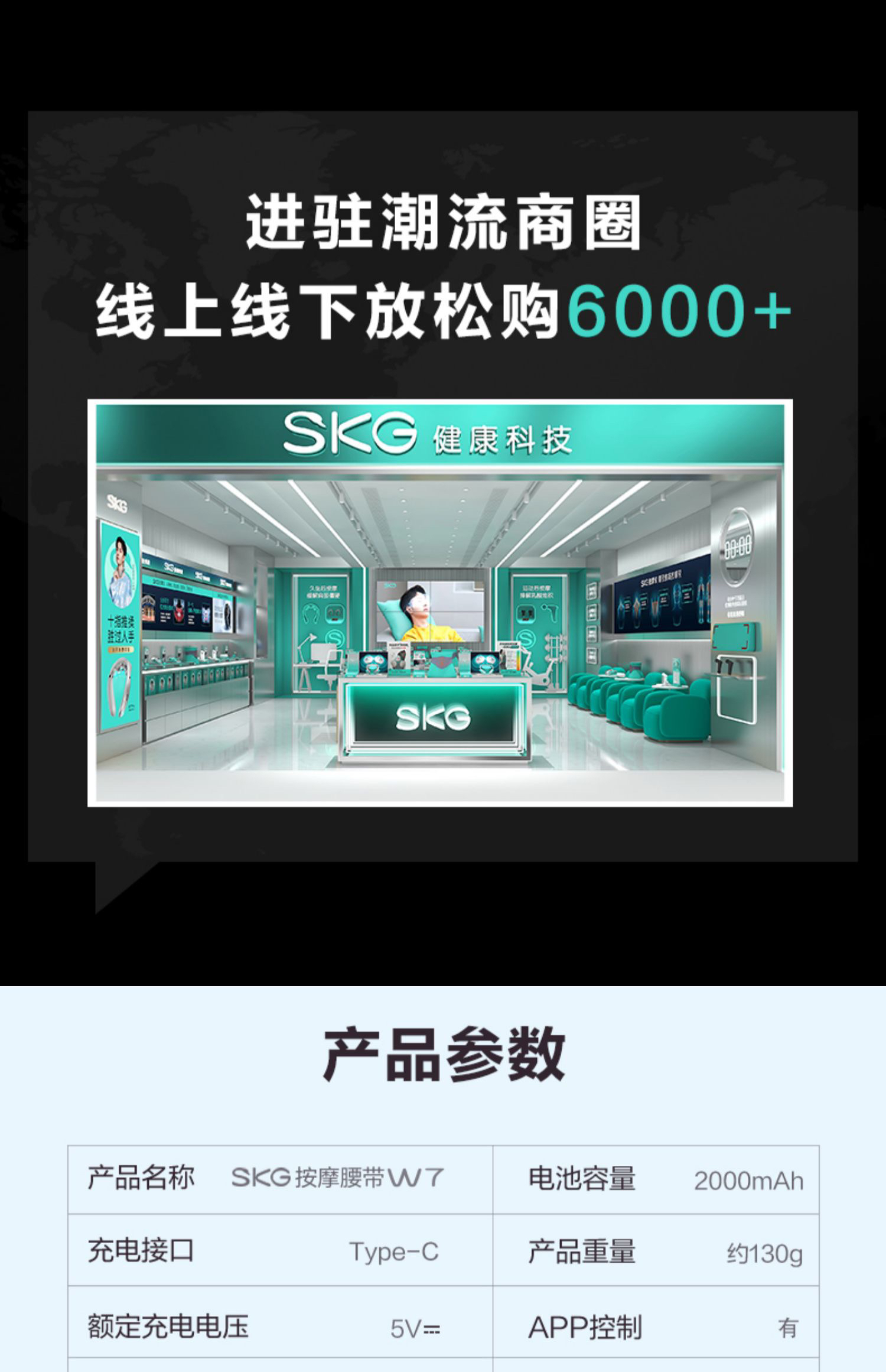 女神节礼物 SKG腰部按摩器W7护腰神器腰腹姨妈热敷按摩脉冲腰椎仪