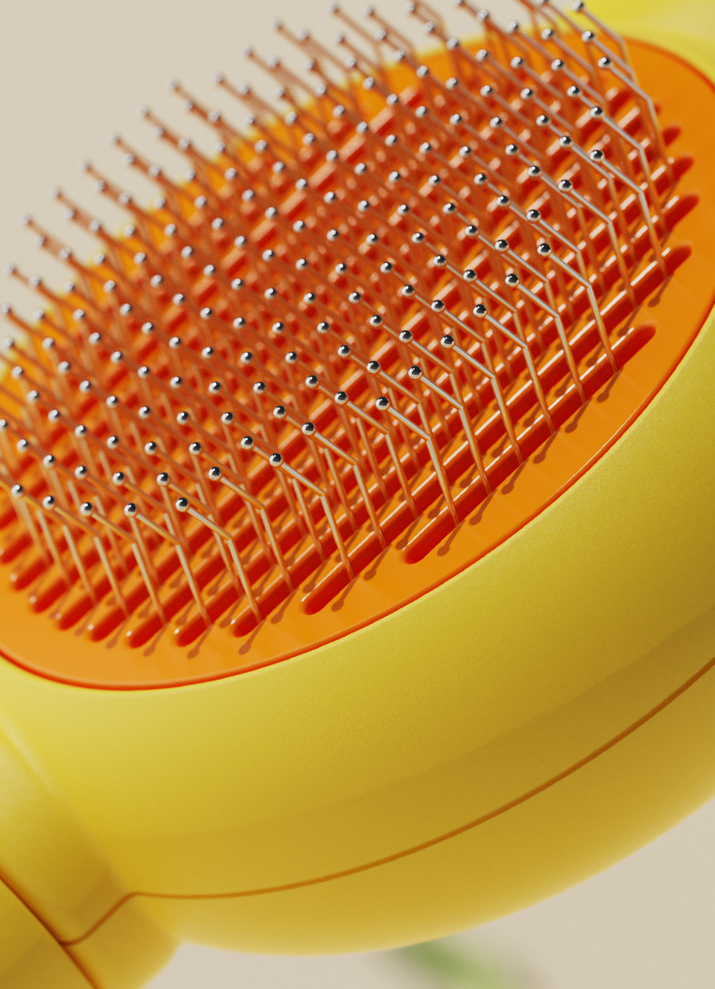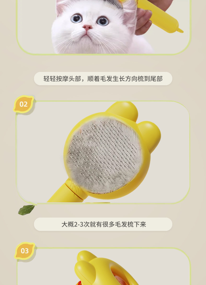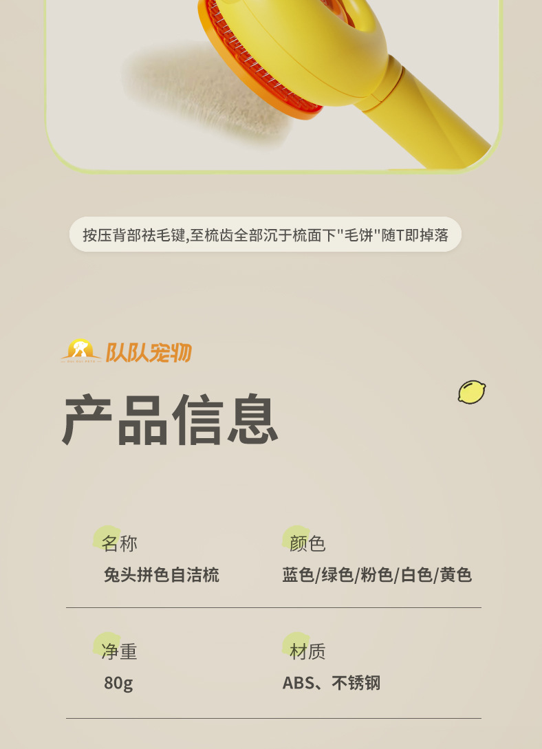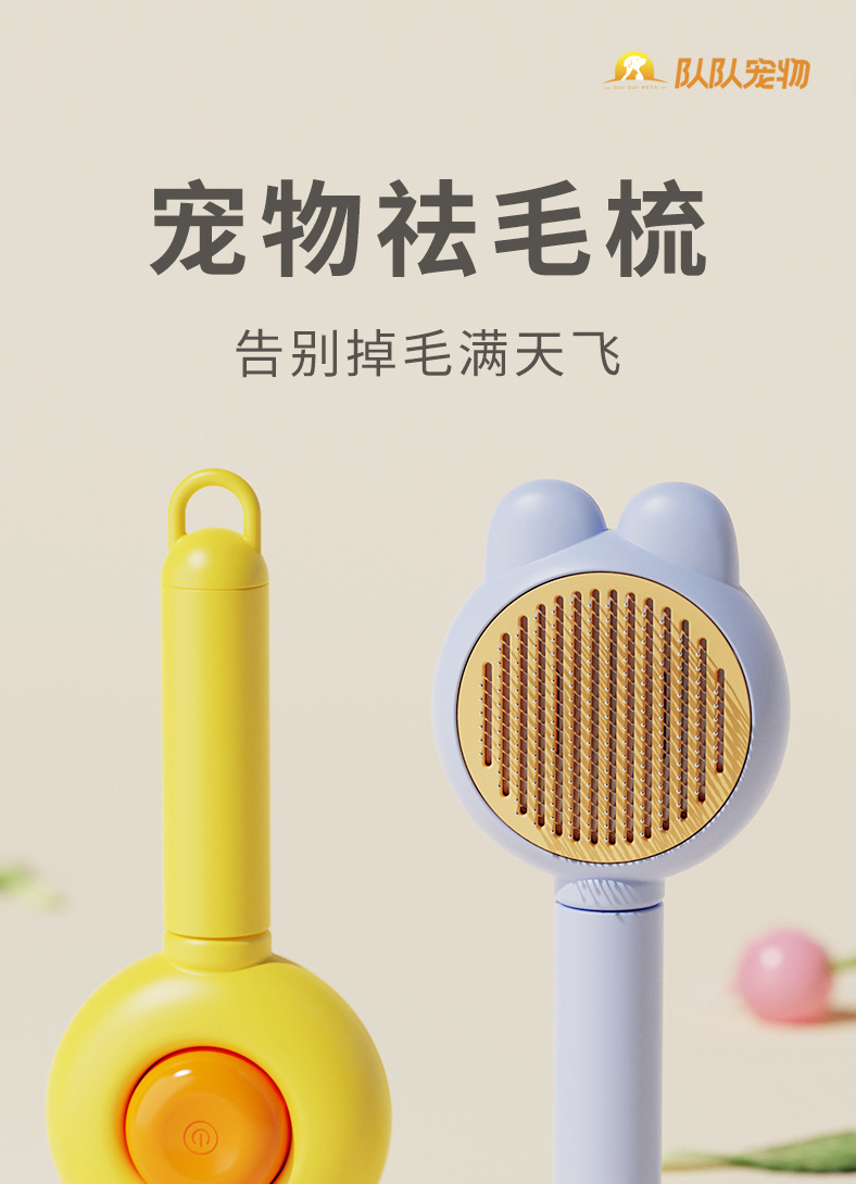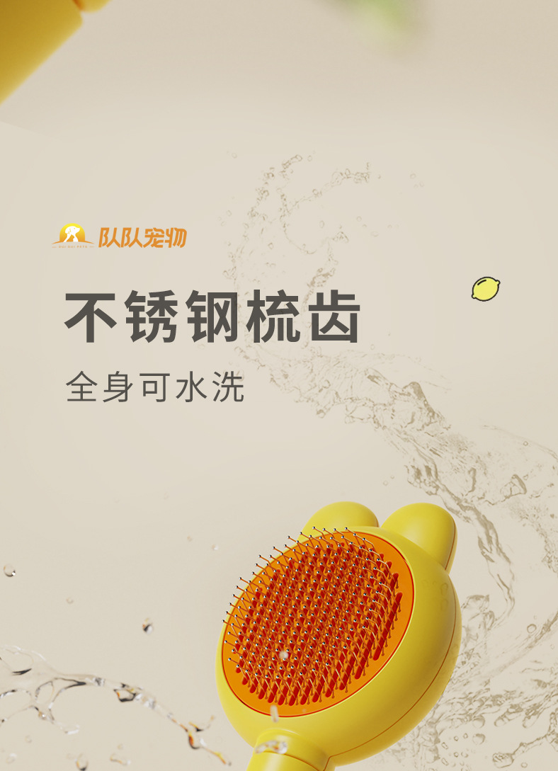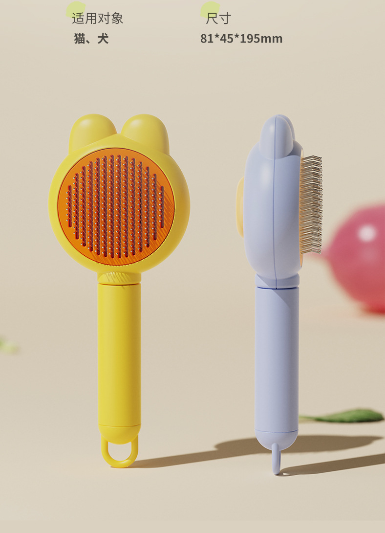 萌萌兔耳一键 自洁梳 圆头针梳去浮毛 按摩梳子批发