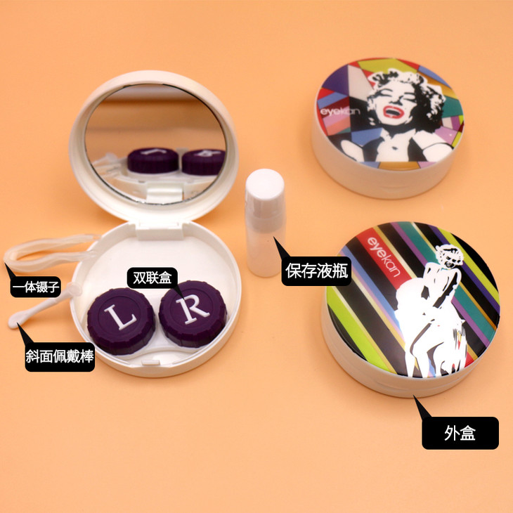 凯达1812卡通隐形眼镜盒美瞳盒子护理盒双联盒美瞳盒批发代发