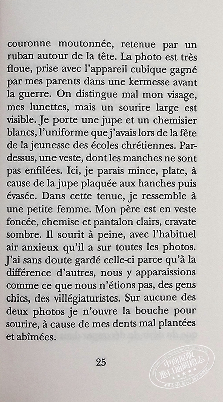 “我一直想写一些我再也无法与人谈论的书,一些会让别人的目光感到难以忍受的书。但是,写一本真实记录我十二岁那年经历的书,我又能感到什么羞耻呢?”——安妮·埃尔诺