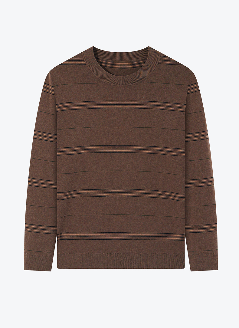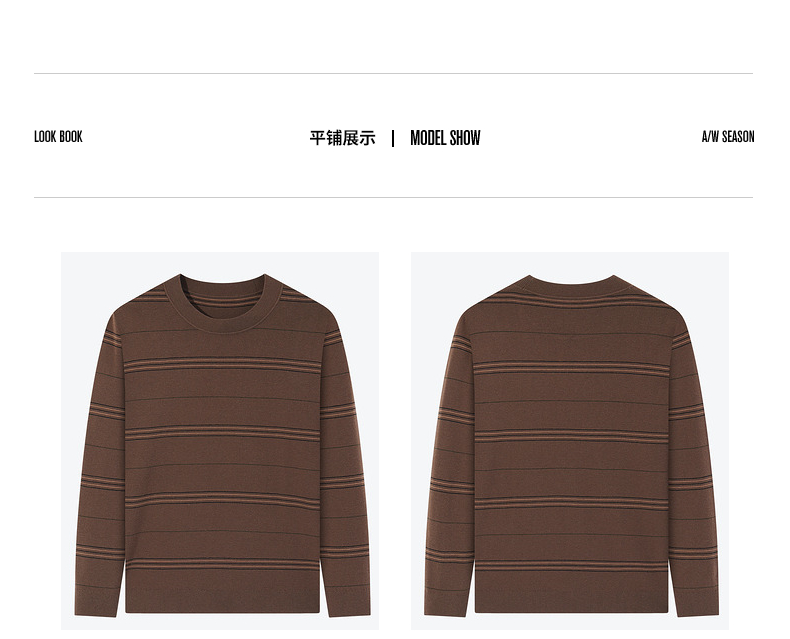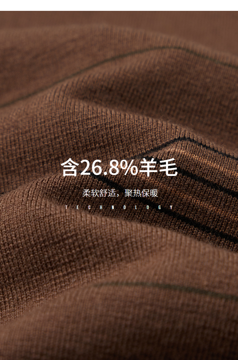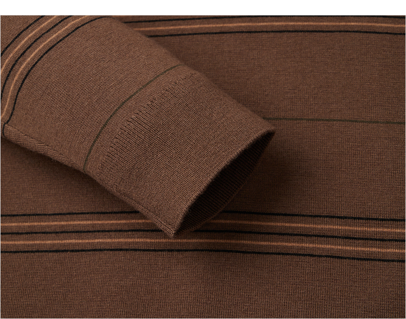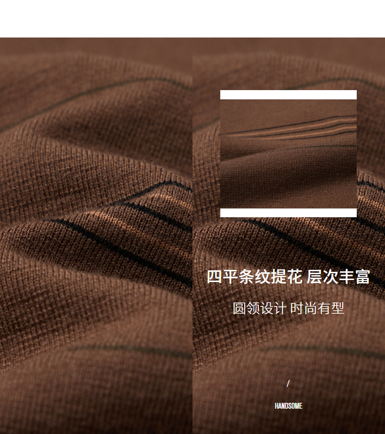 柒牌男士撞色条纹毛衣2024秋冬新款圆领提花含羊毛保暖打底针织衫 127Y70160