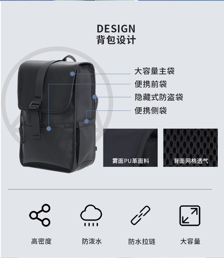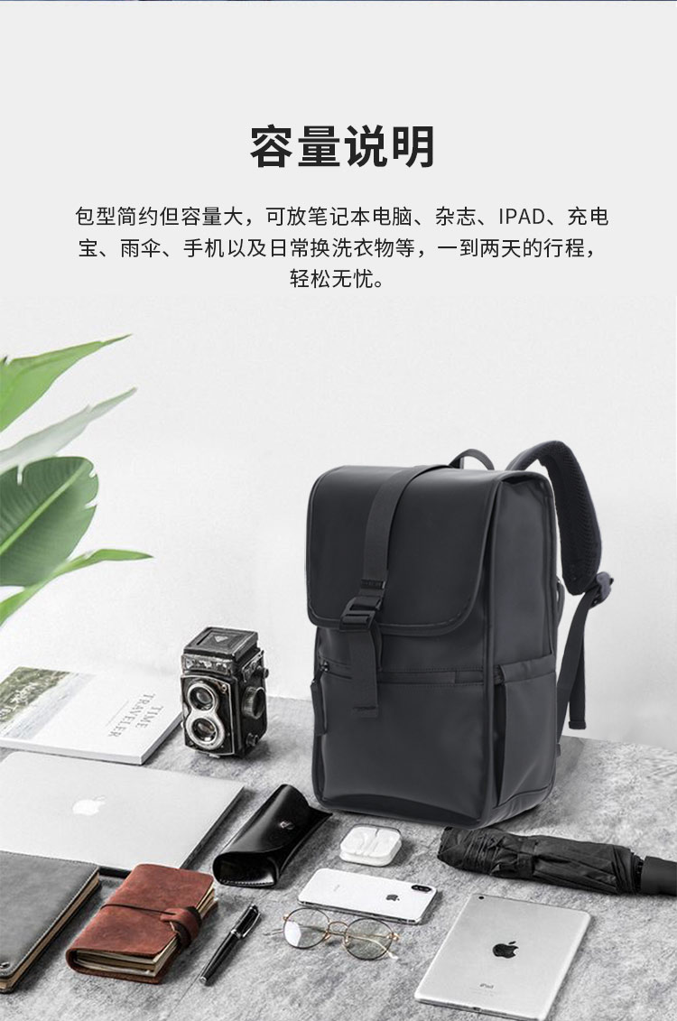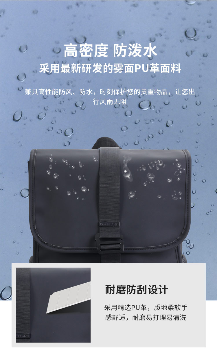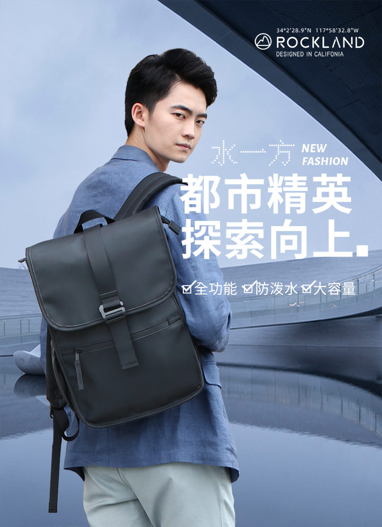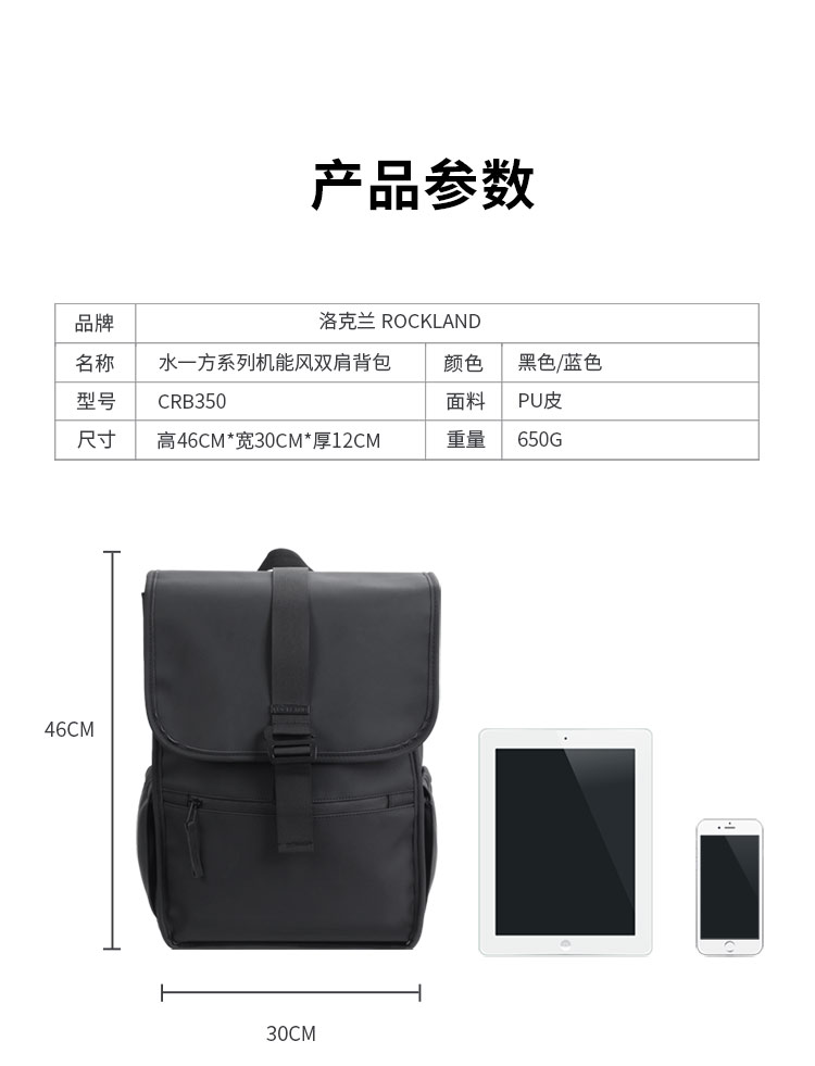美国Rockland双肩包男旅游包时尚潮流男士背包大容量PU学生书包-CRB350