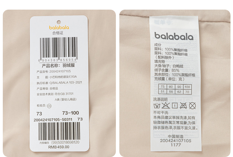 巴拉巴拉儿童羽绒服连帽男童婴儿冬季童装外套宝宝造型可爱时尚萌