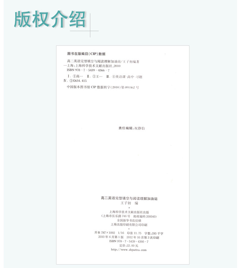 高二英语 完型填空与阅读理解加油站 高2年级 上海版 完形填空训练 提高英语方法与技巧技能和方法 王子初 上海科学技术文献出版社