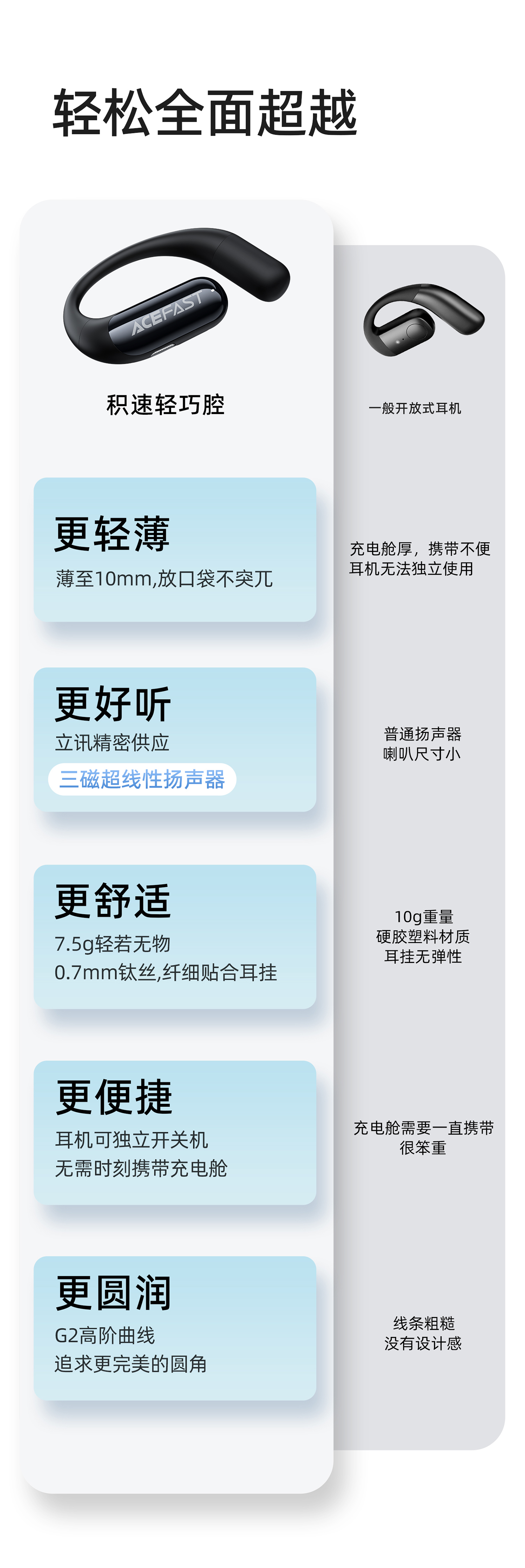 【博士专属】ACEFAST积速轻巧腔开放式蓝牙耳机Acefit Air挂耳式耳机