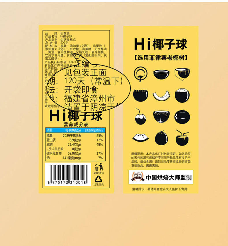 【一口一个糯叽叽】云筱美•Hi椰子球 严选菲律宾老椰树,全脂椰蓉,浓郁椰子奶香,绵软香甜,休闲零食 10g×20粒/盒