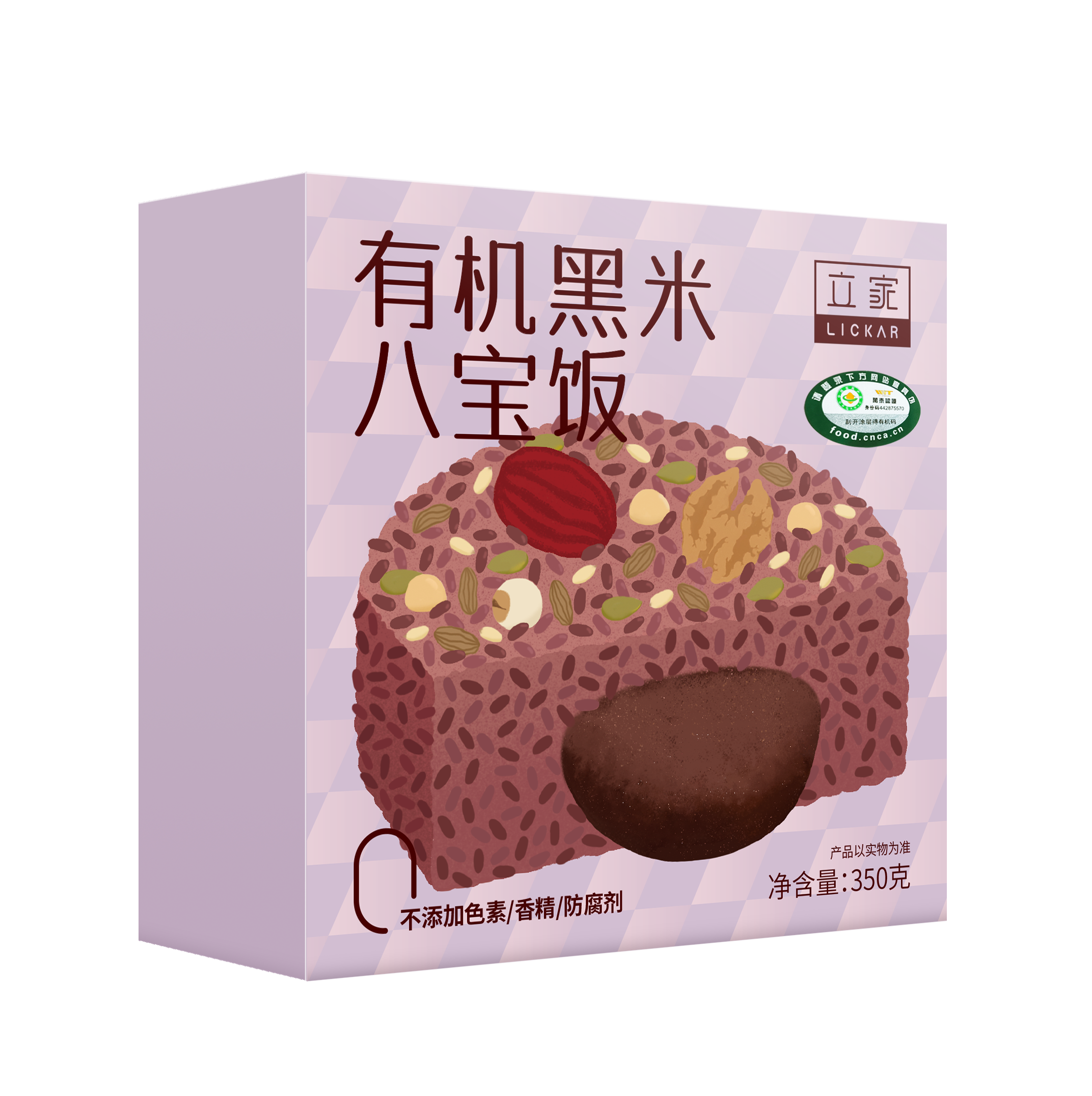 3、有机黑米八宝饭350g/盒(东北有机糯米、有机黑米、有机大红袍红豆、巴西有机白砂糖、有机大豆油)
