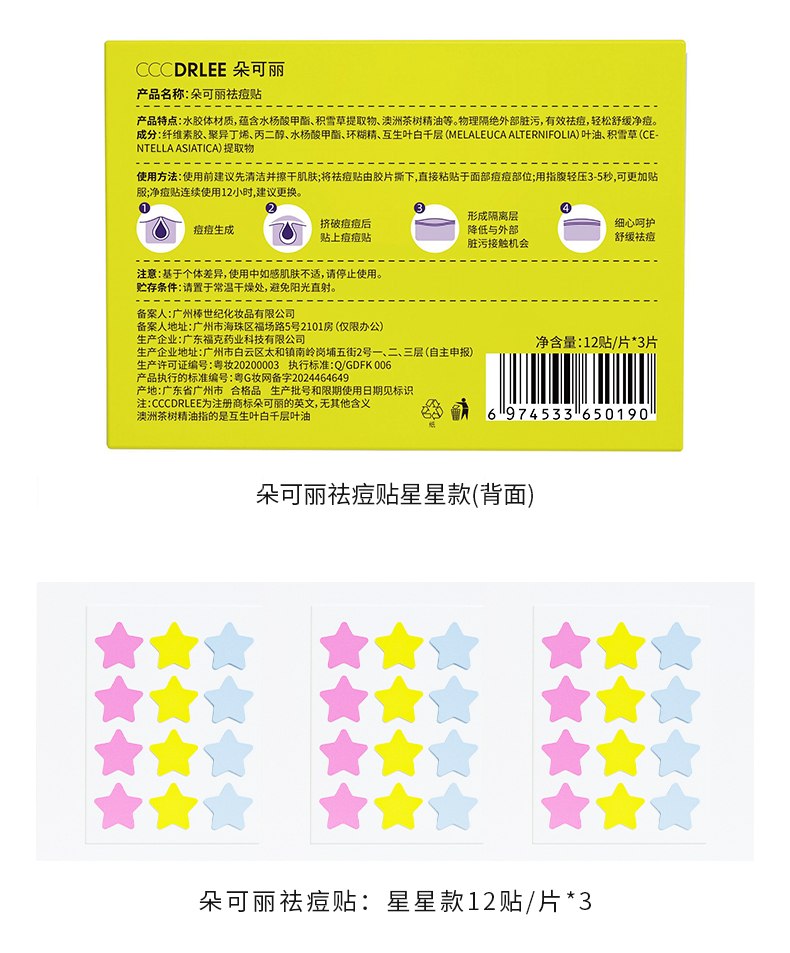 [透小蜜心选]【活动价 ¥ 29.9/12粒*3片/盒 | 到手36贴】朵可丽祛痘贴 舒缓趣玩甜美 线下屈臣氏调色师热卖款