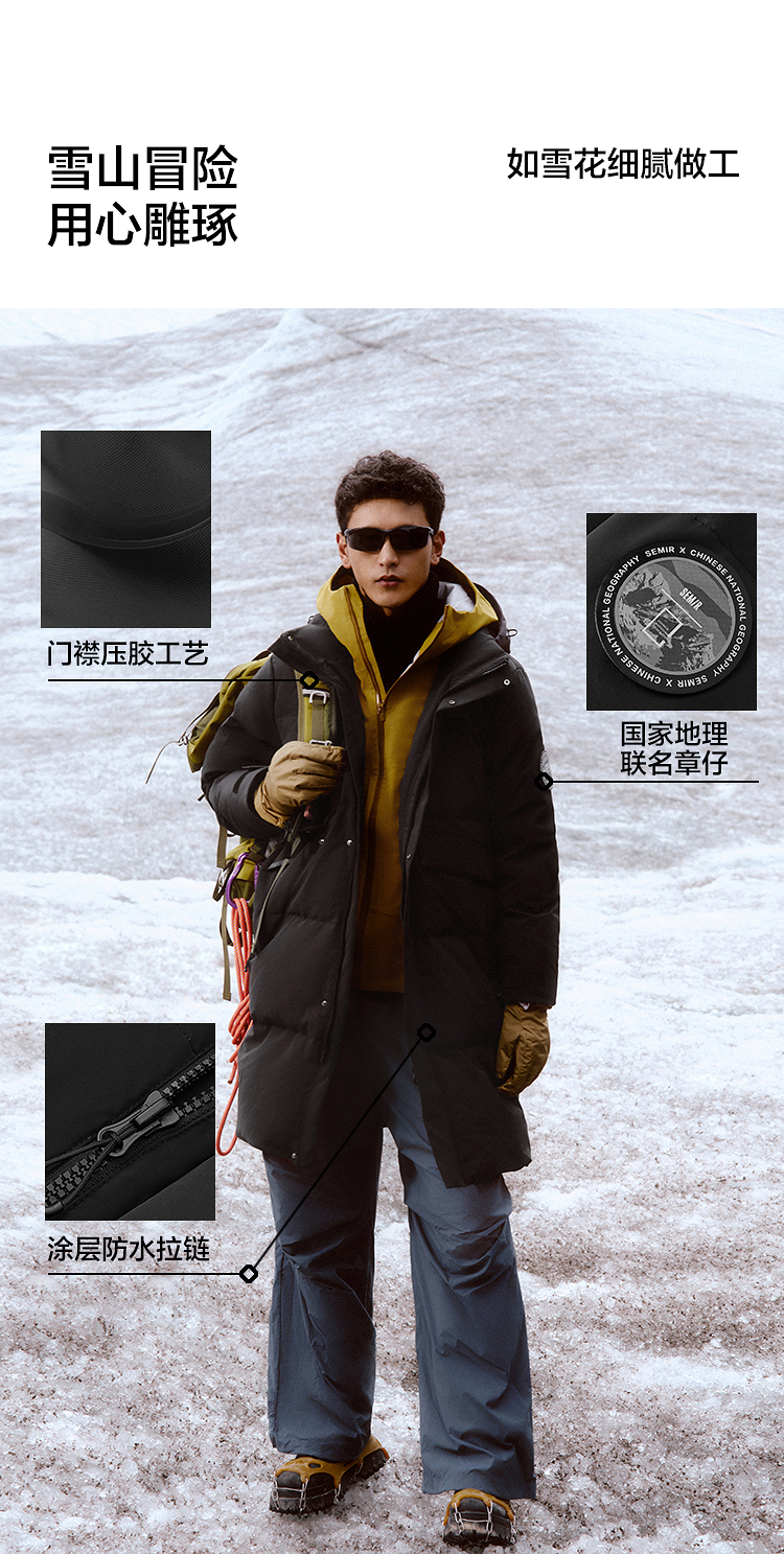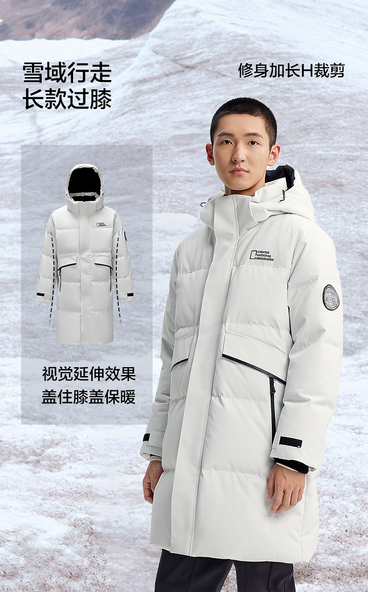 森马中国国家地理系列羽绒服男冬80绒子防雨防风长款外套户外登山