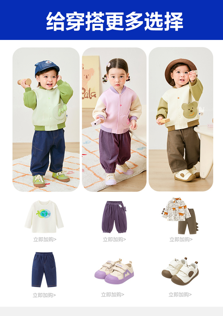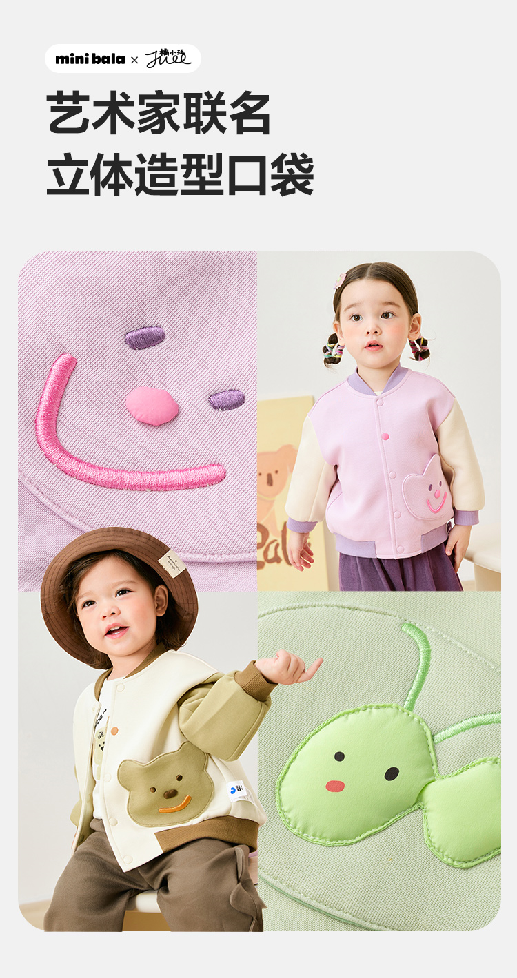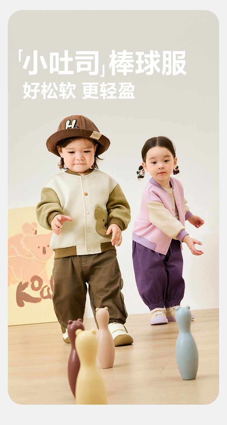 迷你巴拉男童女童撞色棒球服外套春季新款宝宝亲肤户外夹克