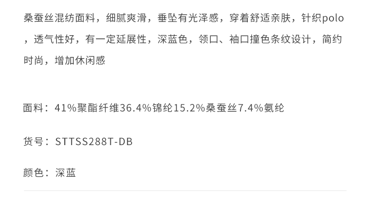 callisto深蓝聚酯纤维混纺T恤 STTSS288T
